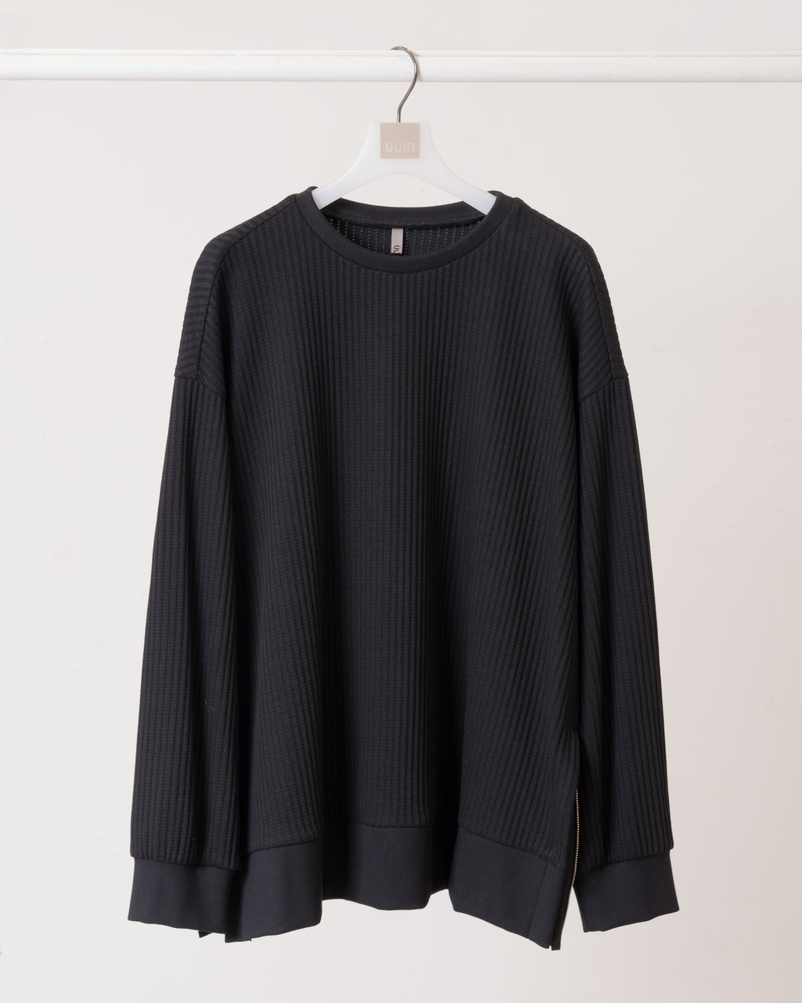 格紋織感圓領上衣(黑色)