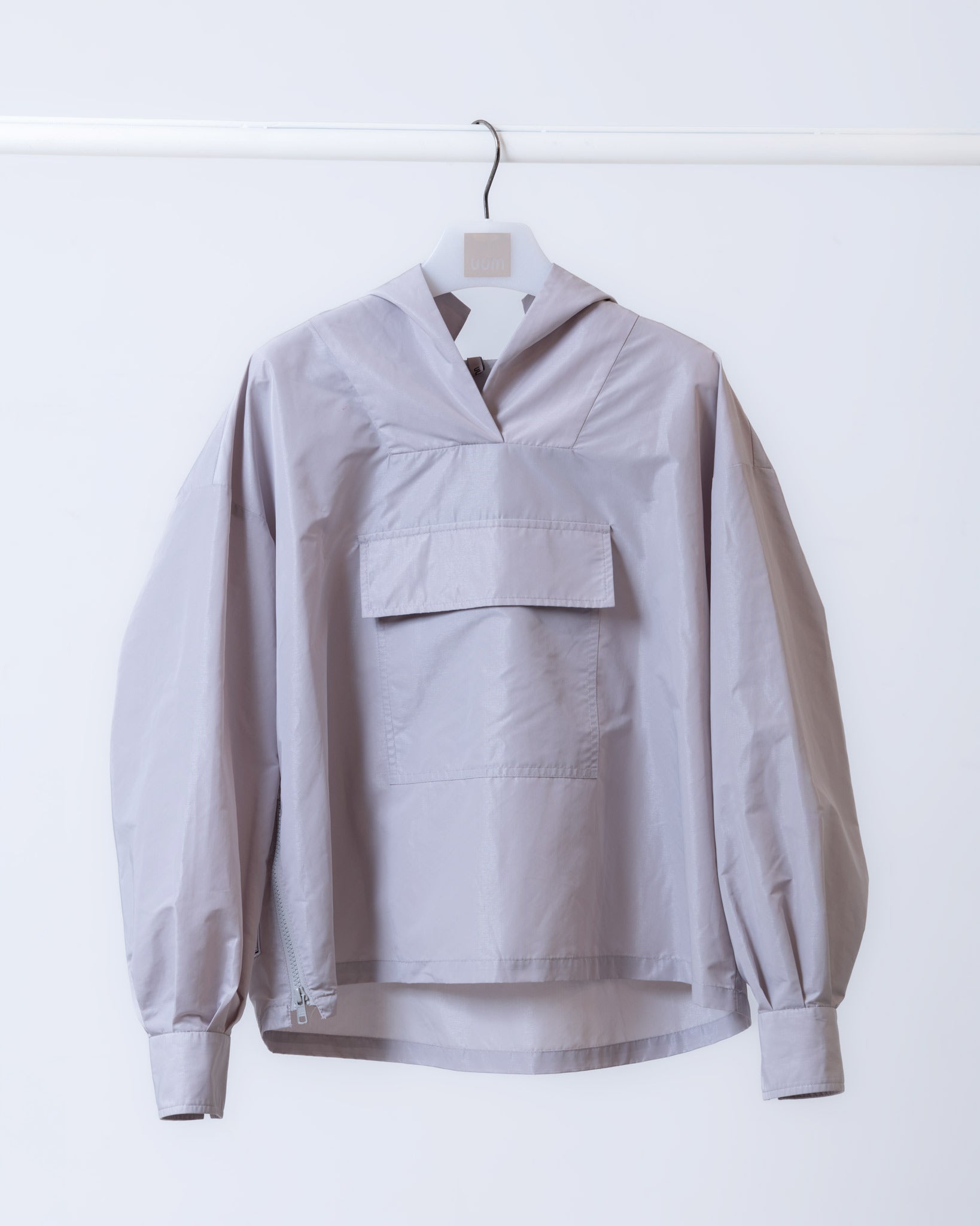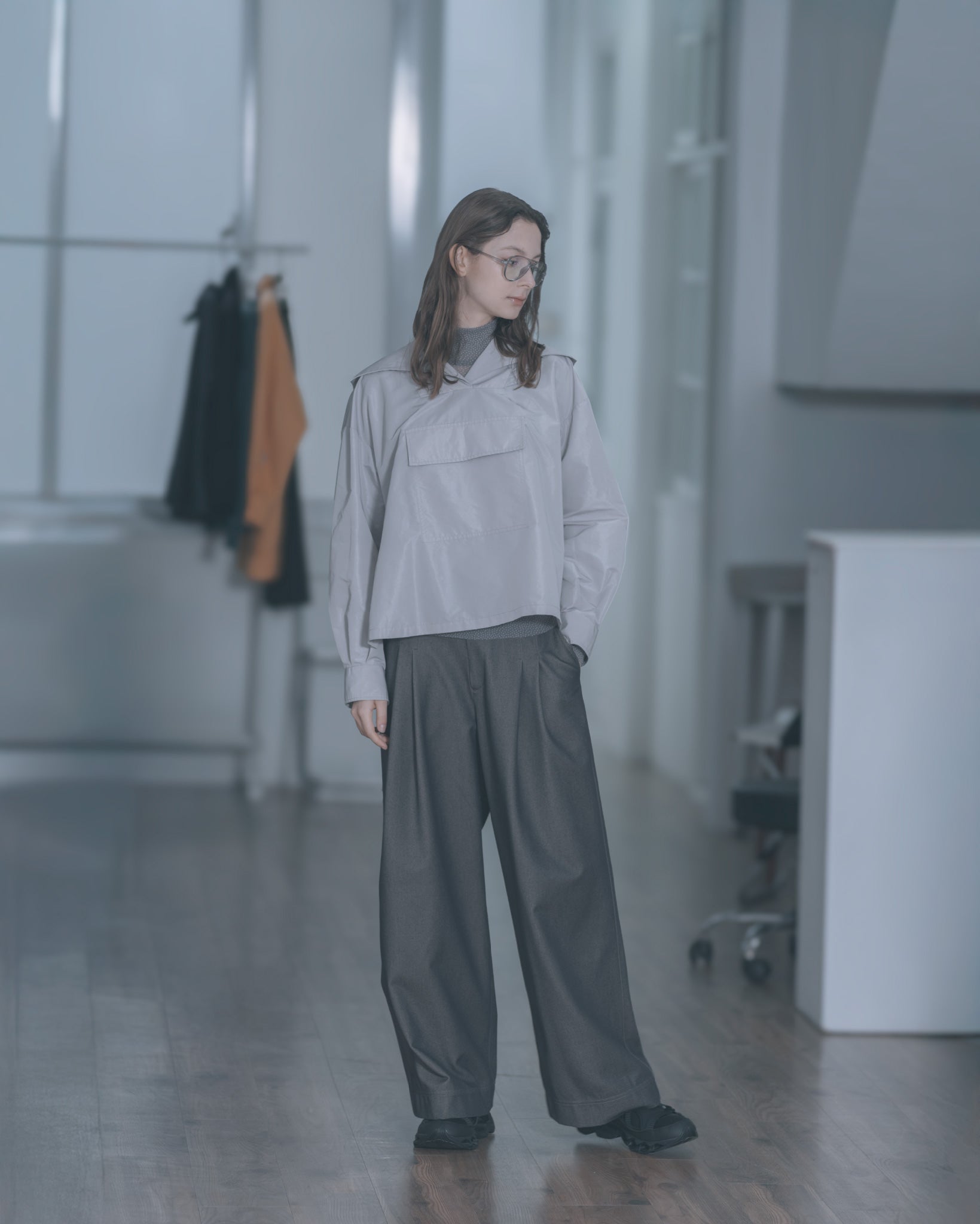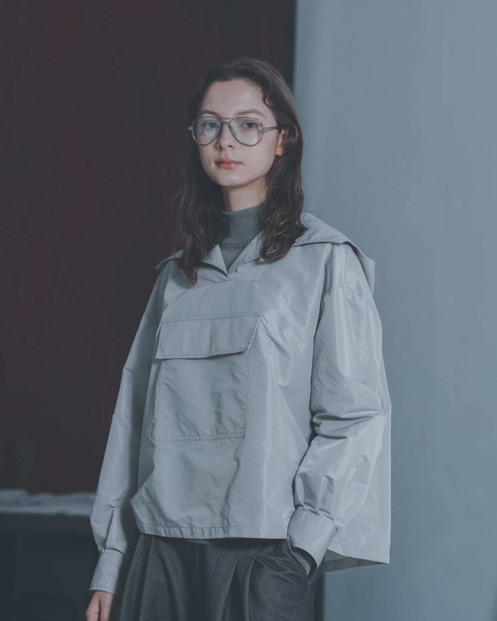 胸前大型翻蓋口袋成為視覺焦點,兼具裝飾性與實用性,不僅可收納日常小物,更提升整體機能層次。服裝剪裁著重輕盈與舒適感,兼顧造型與機能,讓穿著體驗更自在有型。