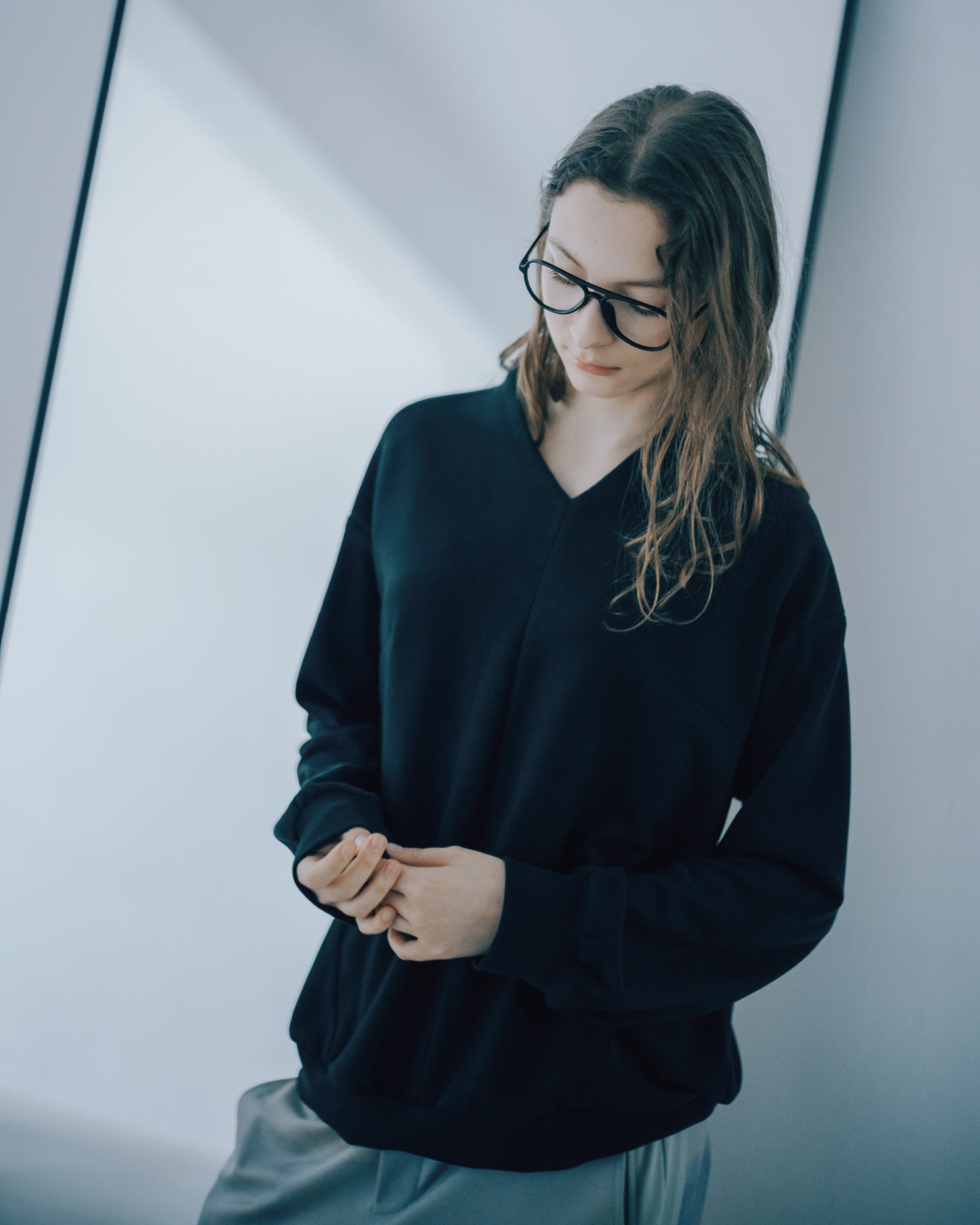 選用柔軟舒適的日本面料,搭配 V 型立領設計,自然展現俐落又修飾的頸部線條。微落肩與寬鬆袖的版型讓穿著更加自在,也能輕鬆修飾手臂。袖口與下擺使用收口收整,使衣身保持清爽的輪廓,不論搭配牛仔褲、長裙或外罩,都能展現隨性卻有型的日常風格。