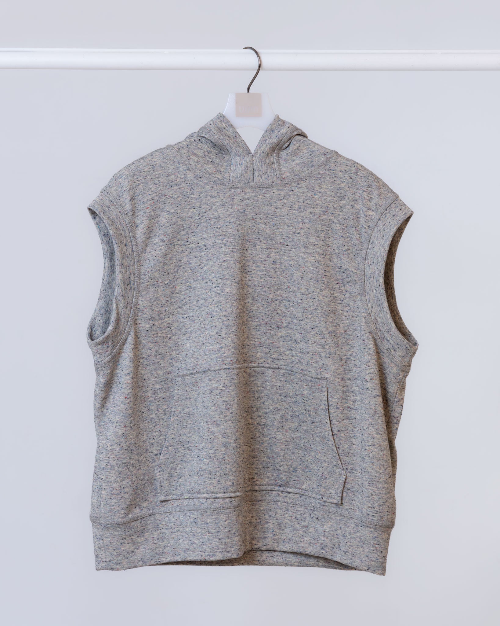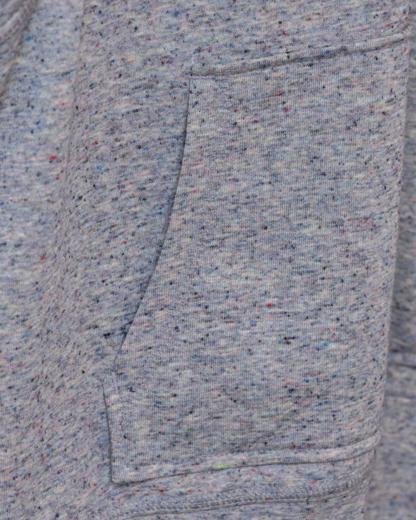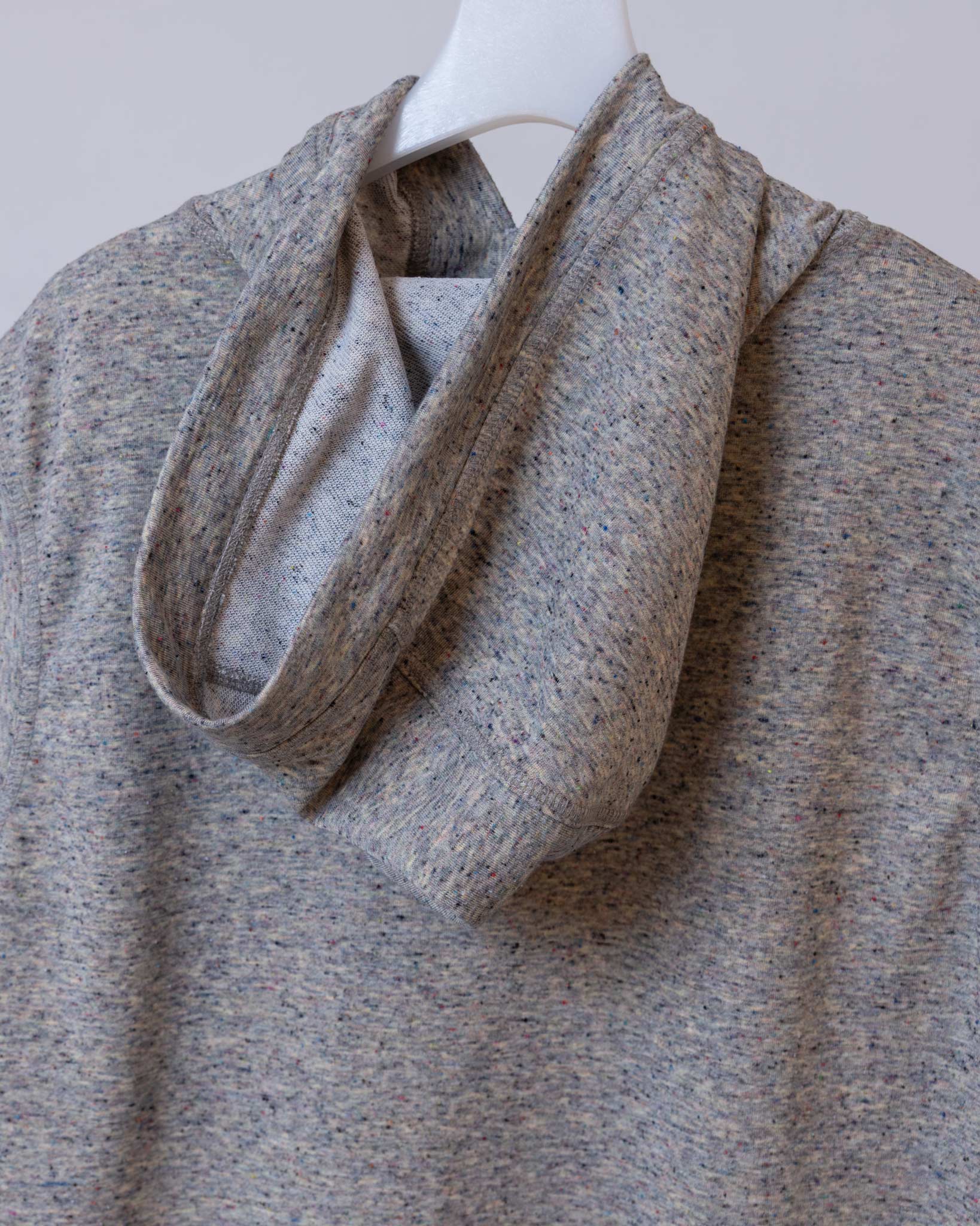 以極簡廓型展現寬鬆自然的肩線,帶來不受拘束的穿著體驗。微微外展的肩部剪裁巧妙修飾手臂線條,提升整體比例與視覺輕盈感。大面積袋口設計作為造型重點,不僅增添視覺層次,更強化實用機能,完美融合設計與功能性。選用環保再生面料製作,布面自然呈現細緻粒點紋理,體現品牌對永續時尚的實踐與承諾。