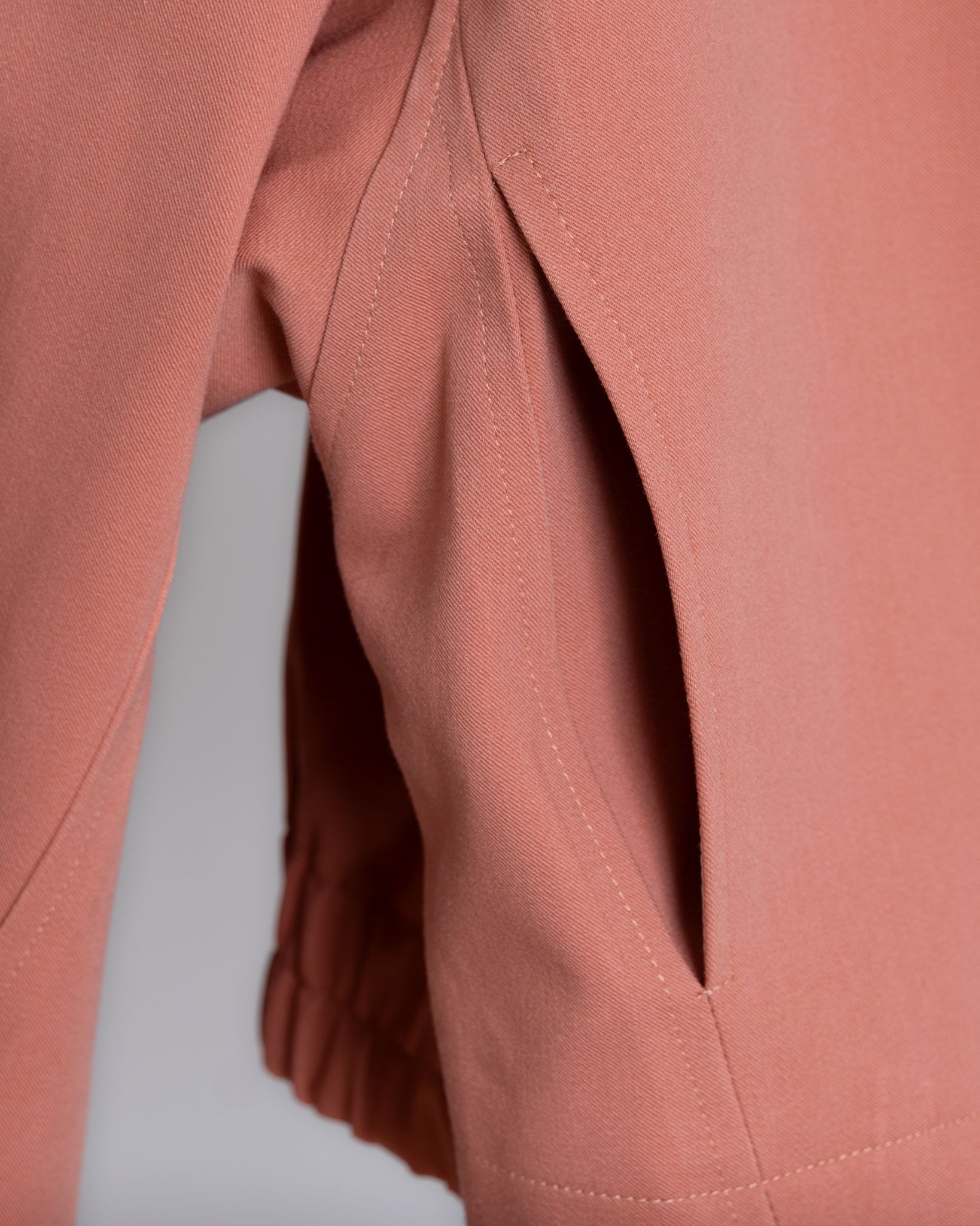 ▎特色 │ 翻領設計、短版造型、鬆緊抽皺、兩側口袋