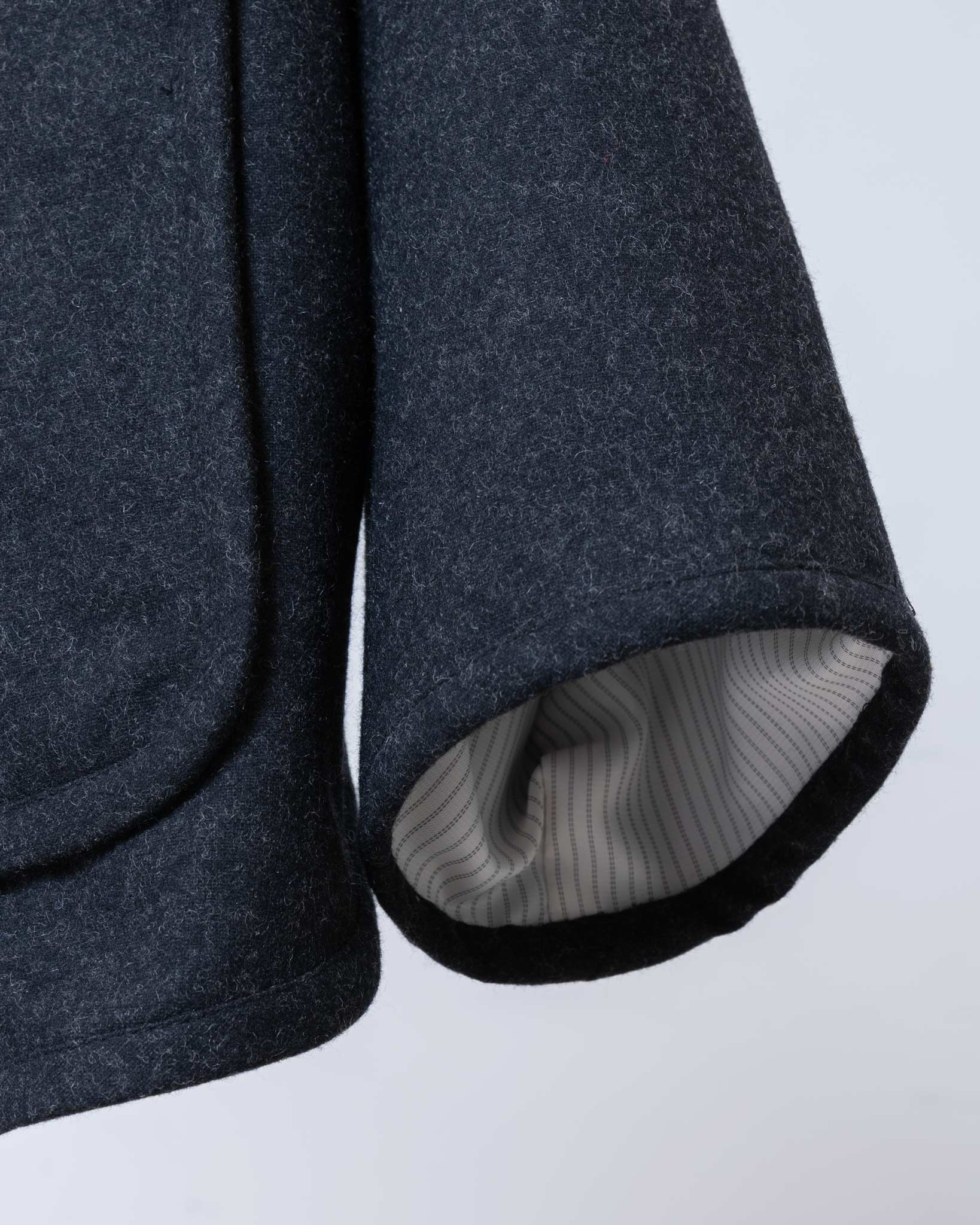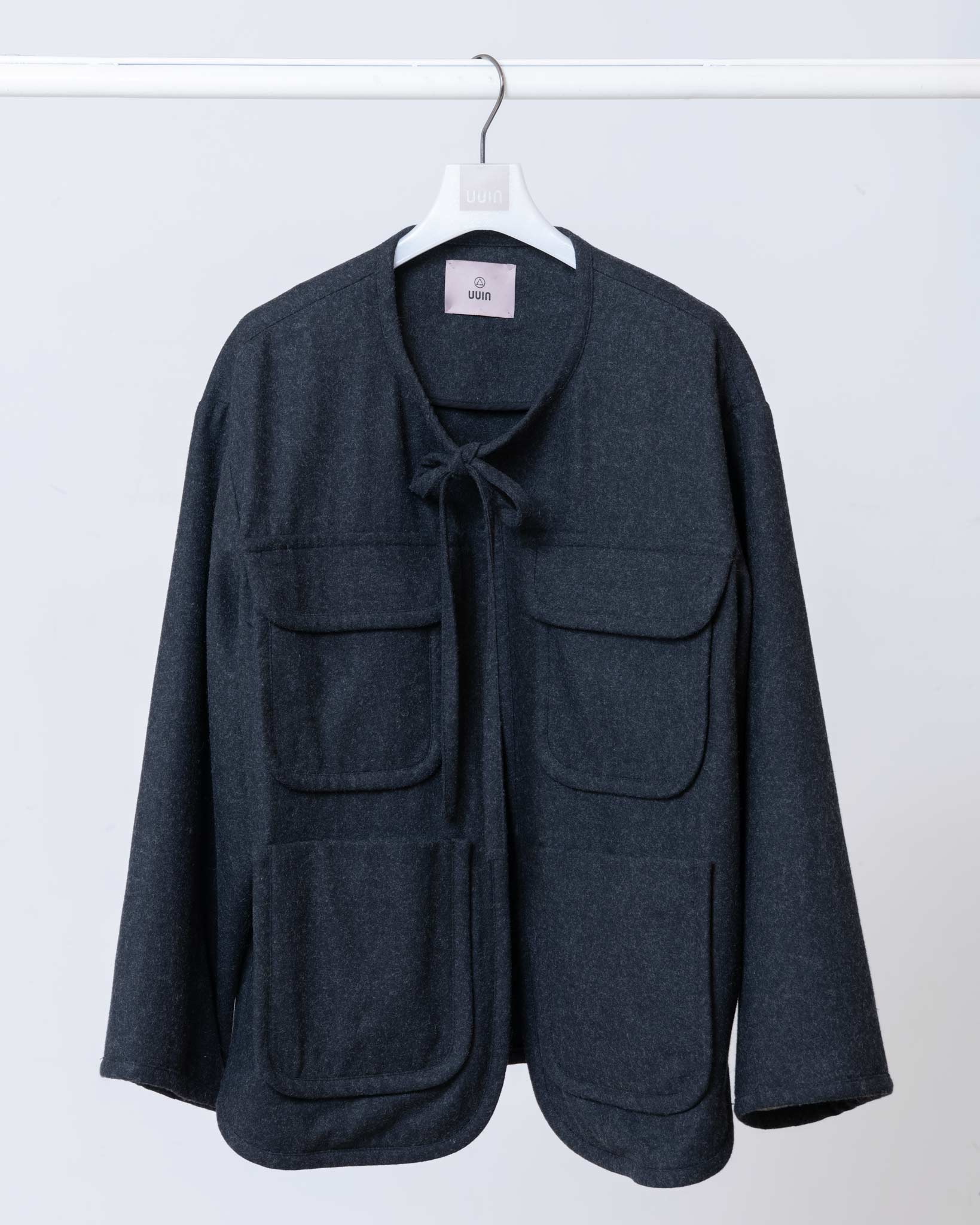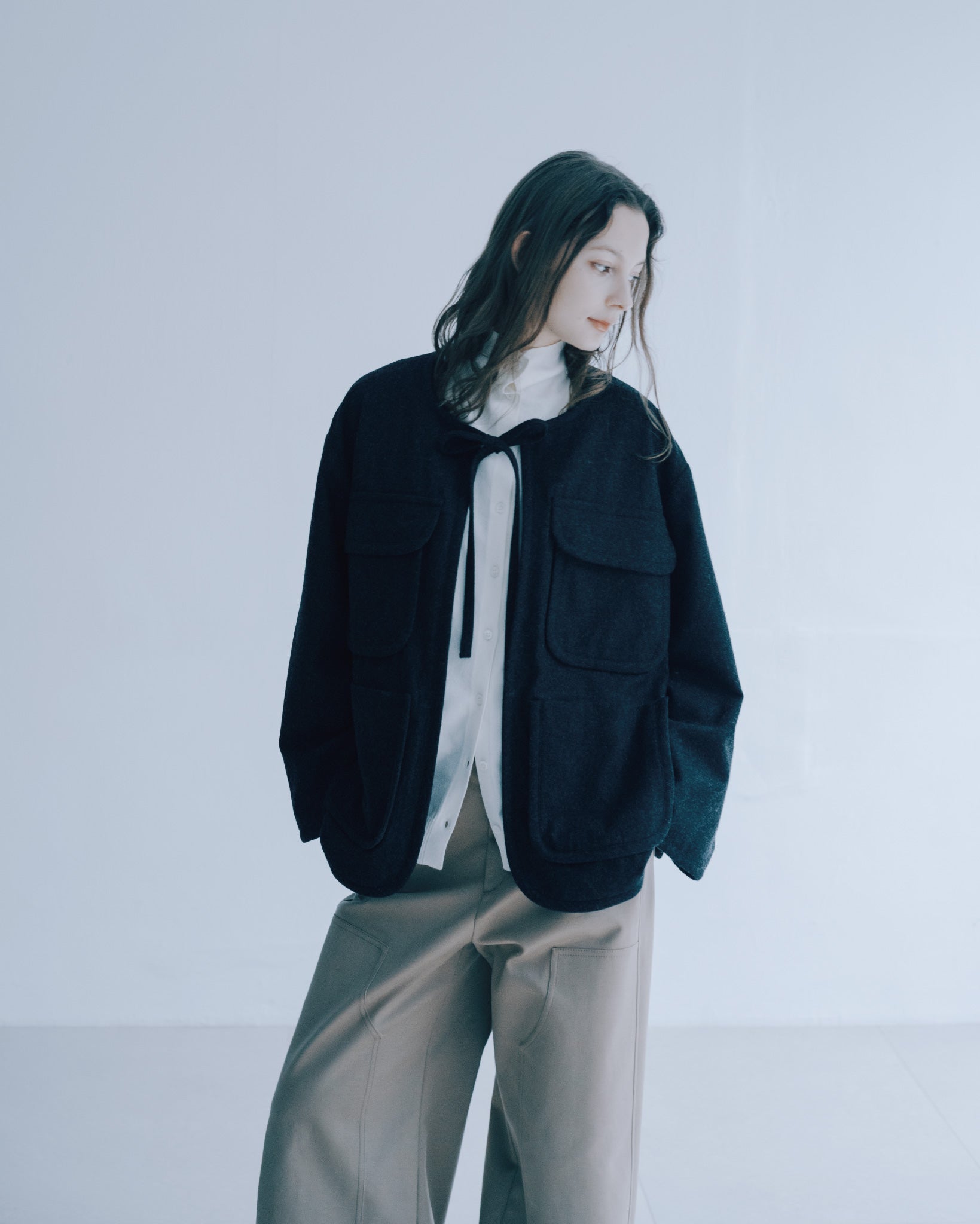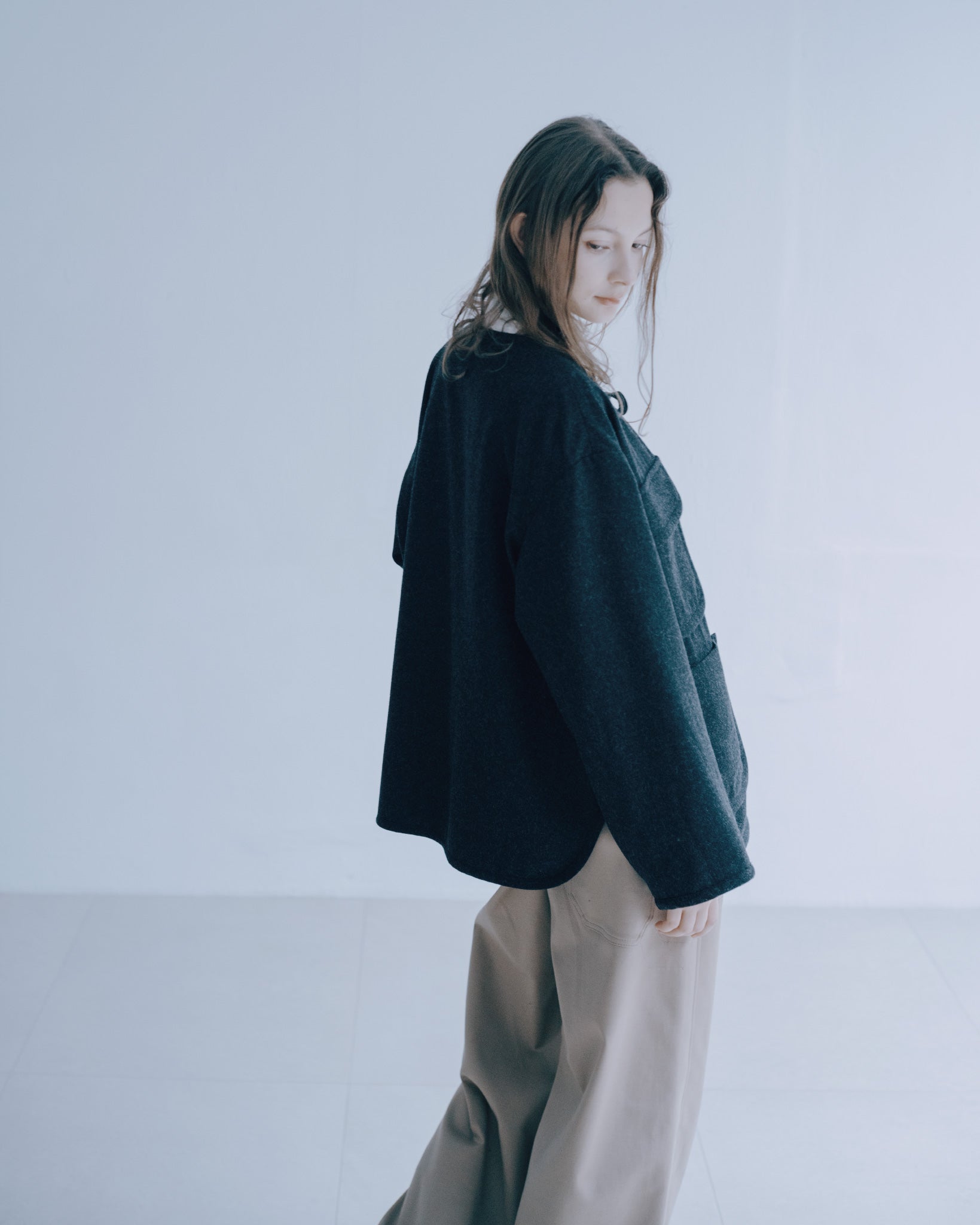 選用柔軟細緻的毛呢面料,結合圓弧廓型與綁帶設計,展現溫柔氣質與優雅線條。沉穩內斂的黑色款,兼具百搭性與實穿度,輕鬆融入多元穿搭風格。帶有細膩羊毛觸感的面料,適合微涼季節作為外搭單品使用,增添整體造型的層次與溫暖氛圍。