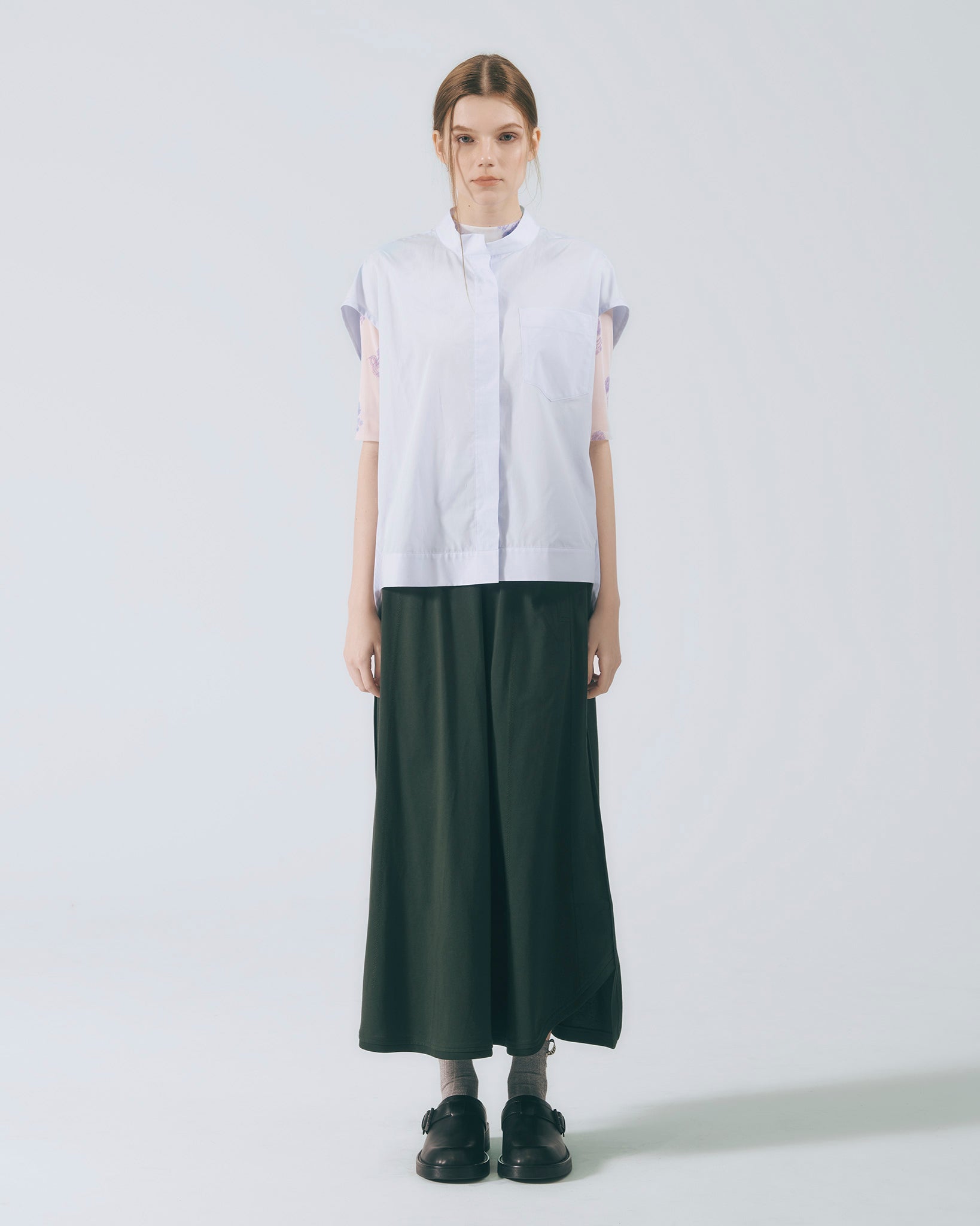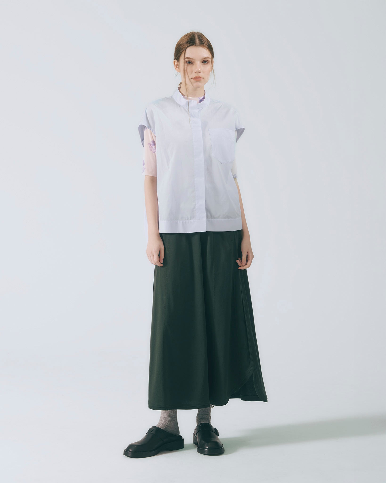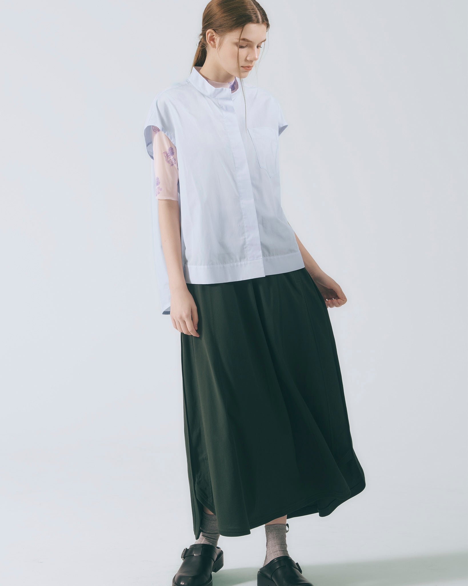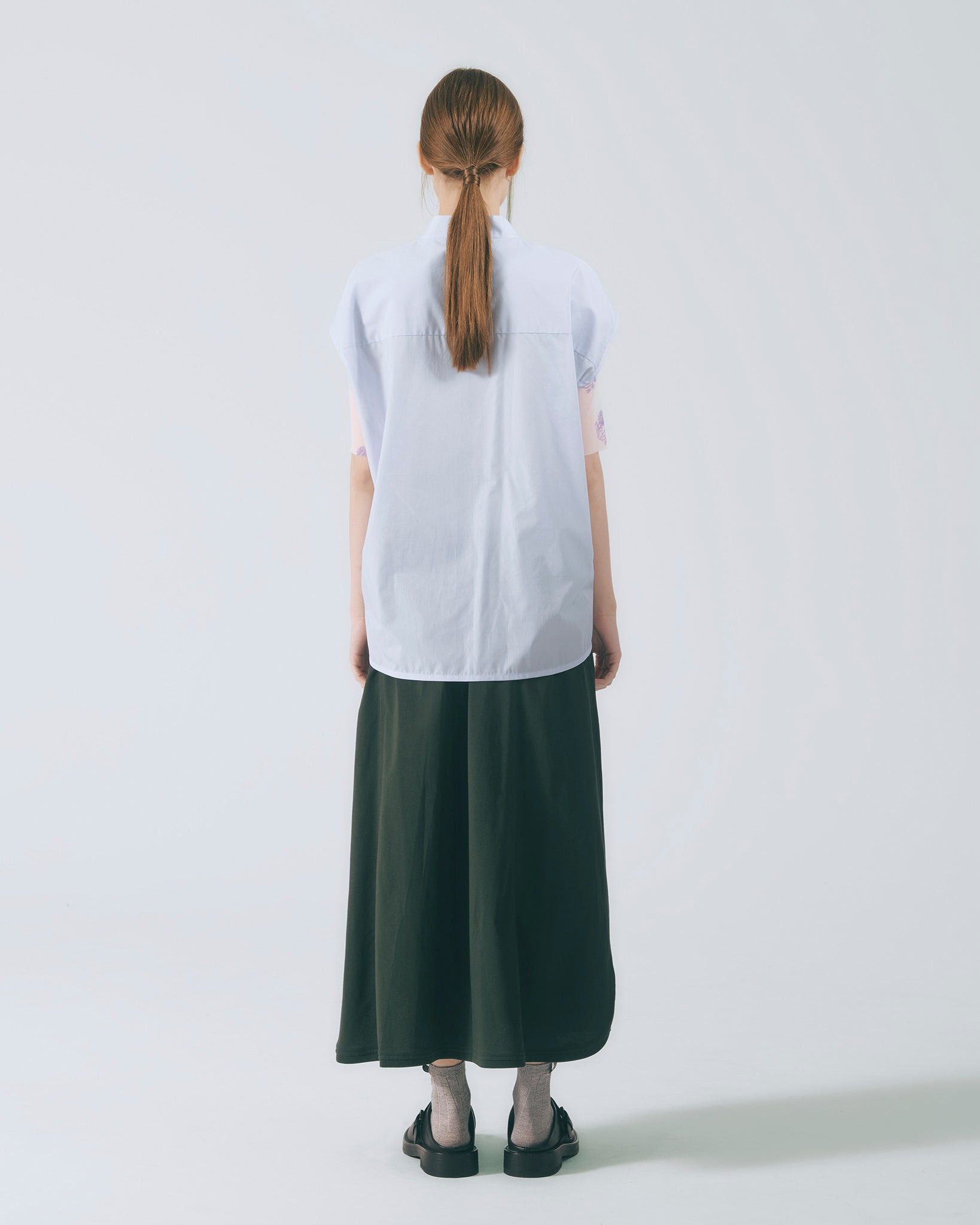 舒適貼合修身比例 · 人字刺繡全鬆緊腰頭設計,帶來舒適貼合的穿著體驗;搭配優雅的A字輪廓剪裁,修飾身形更顯輕盈。細膩的人字紋刺繡點綴其間,增添低調層次感;兩側斜邊口袋設計兼具實用與造型。裙襬以弧線開岔剪裁收尾,隨步伐自然擺動,流露柔美氣息。整體以神秘沉穩的藍綠色呈現,散發出內斂而迷人的氣質。