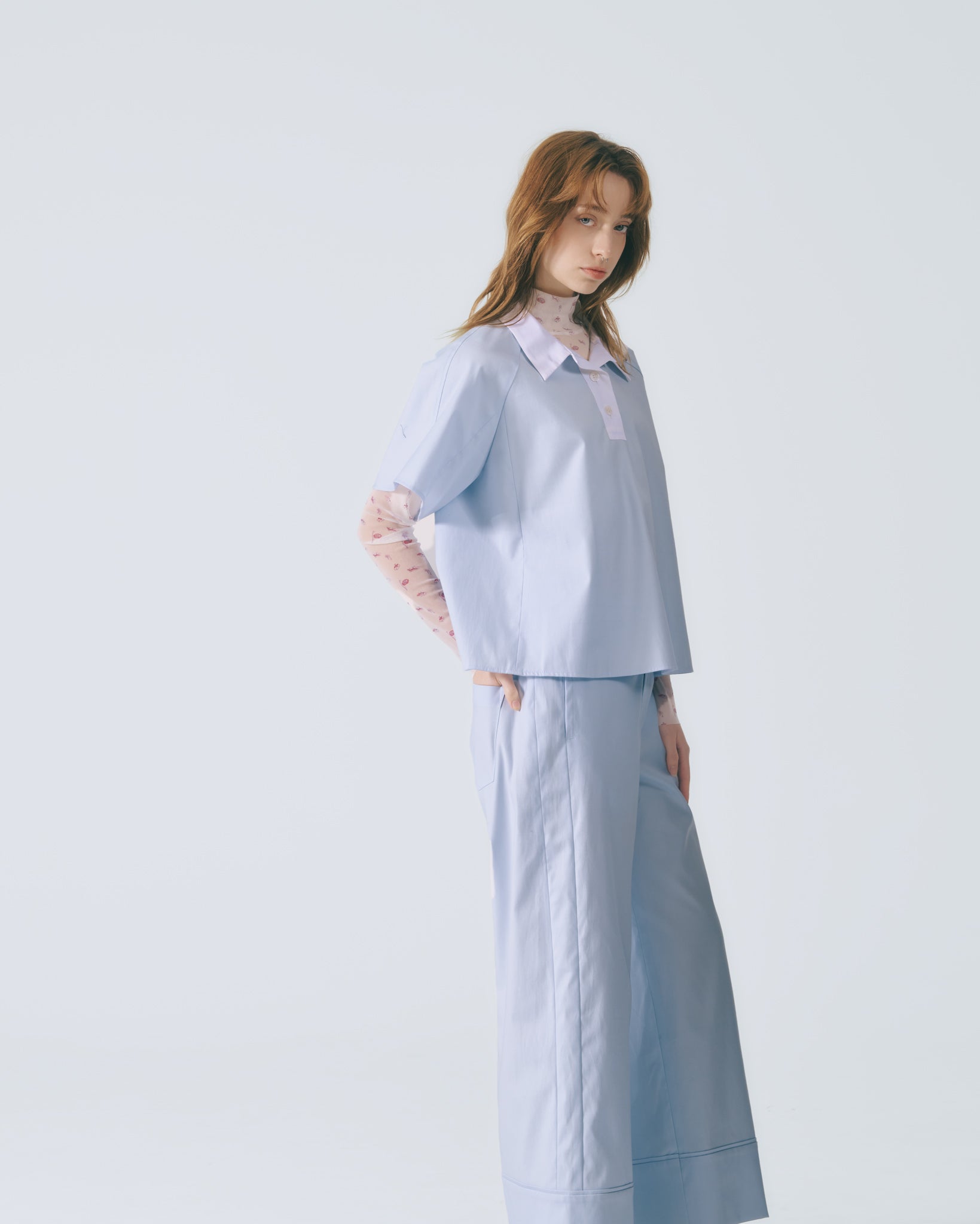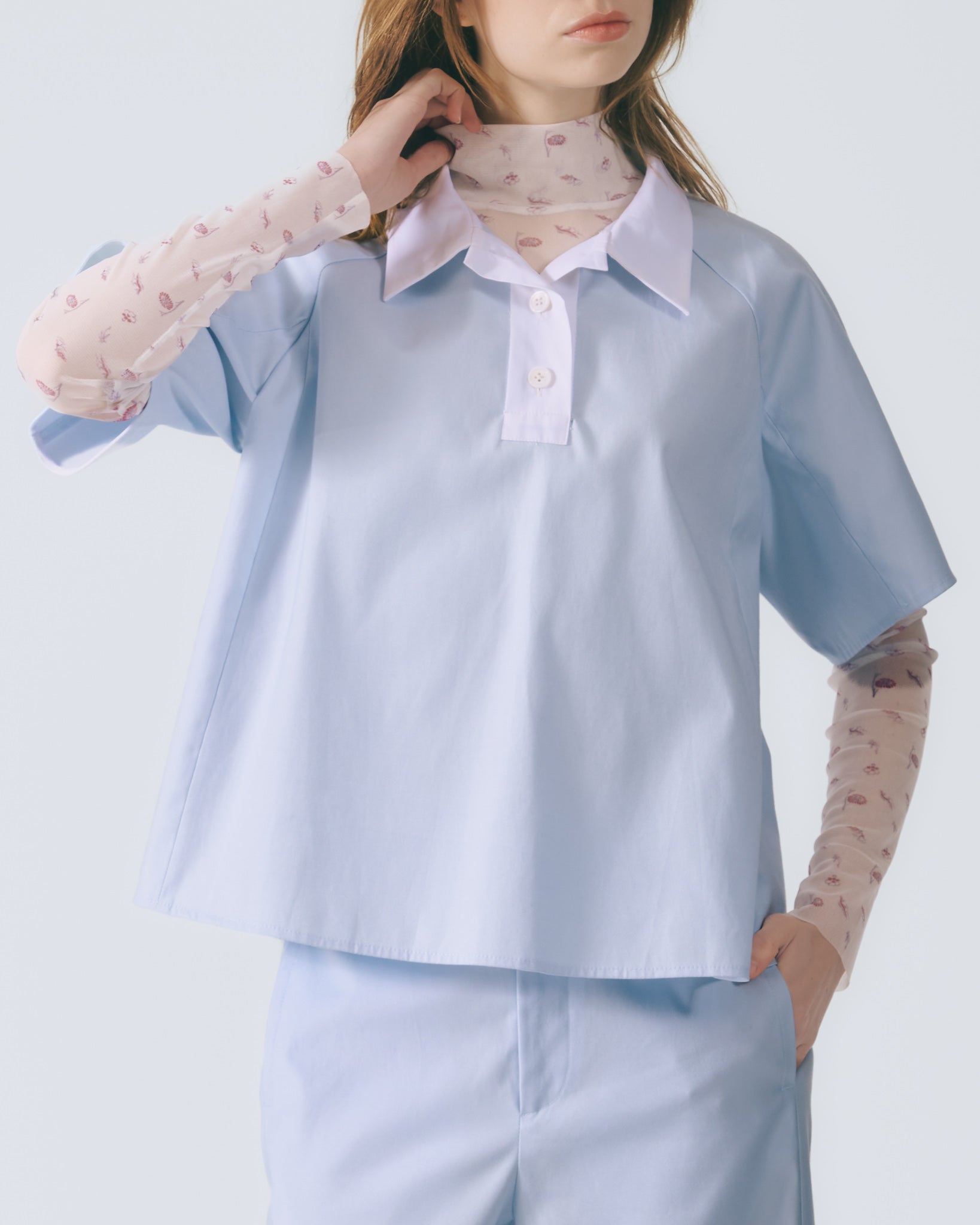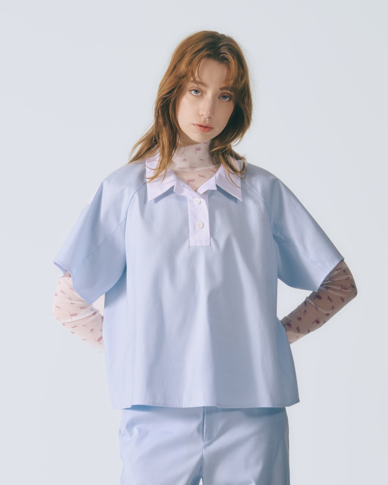 採用拼接POLO領撞色設計,為整體造型注入層次與視覺亮點。拉克蘭袖拼接剪裁搭配五分袖垂墜版型,自然修飾手臂線條,展現輕盈輪廓。半開襟門襟設計增添細節變化,讓穿搭更具層次感。整體以直筒寬鬆剪裁呈現,穿著舒適不貼身,適合日常與多元風格搭配。