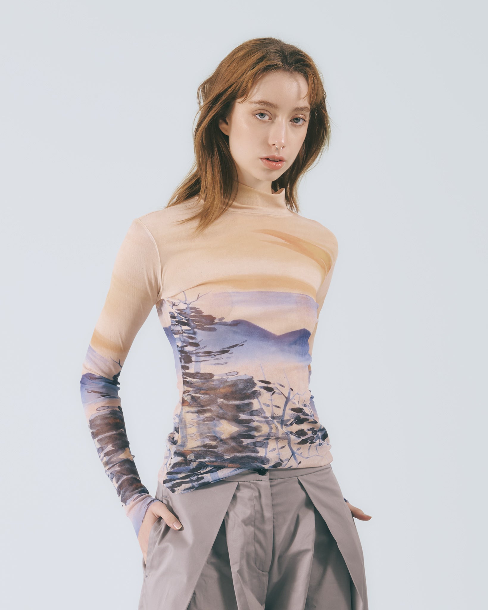 選用高彈性絲襪面料,質地親膚、不悶熱,適合春夏季節單穿,亦可作為內搭層次靈活搭配。包容多種身型的版型設計,中高領剪裁勾勒頸部線條,低調卻充滿辨識度。在日常與造型之間取得平衡,是 UUIN 長久以來備受喜愛的經典單品之一。
