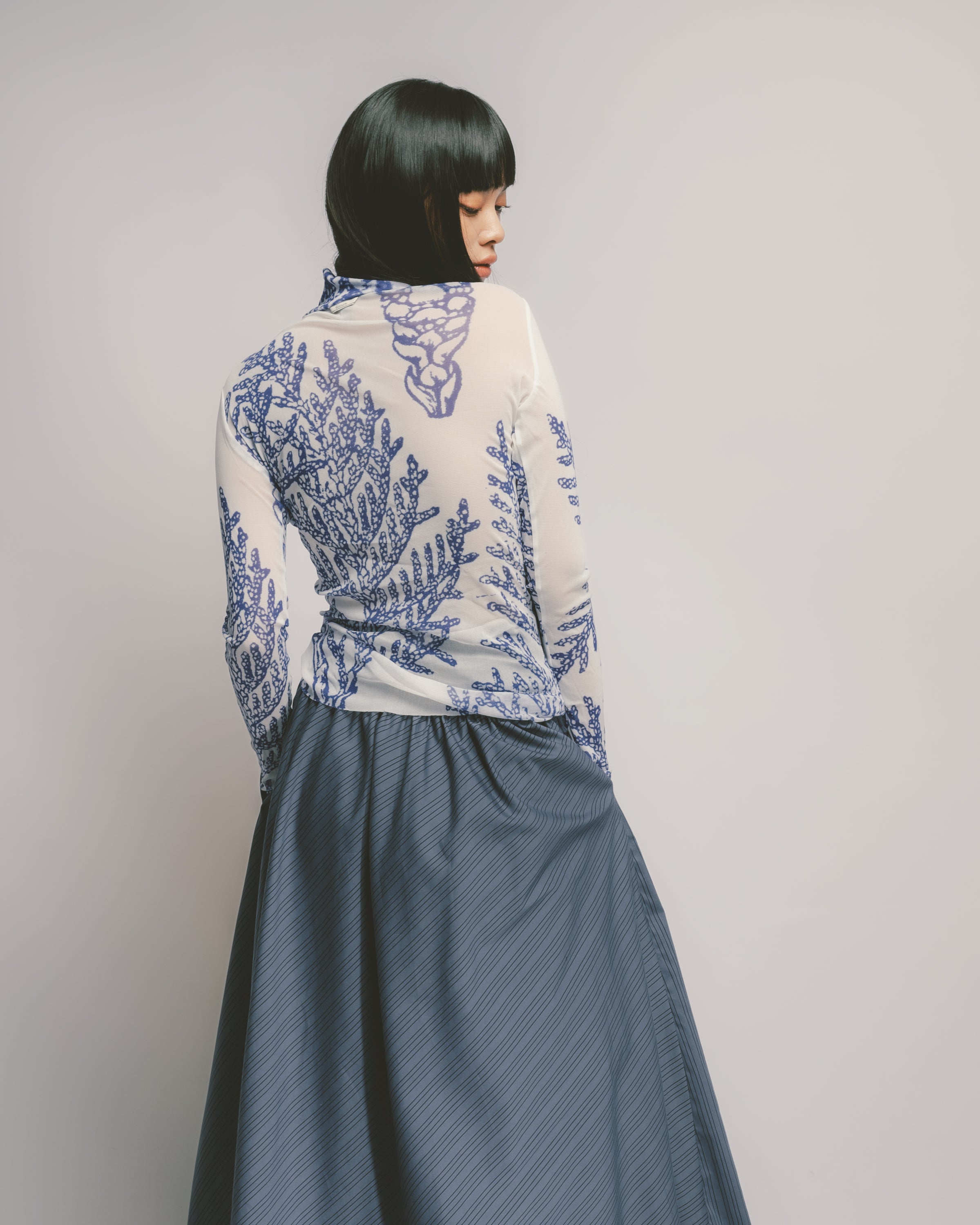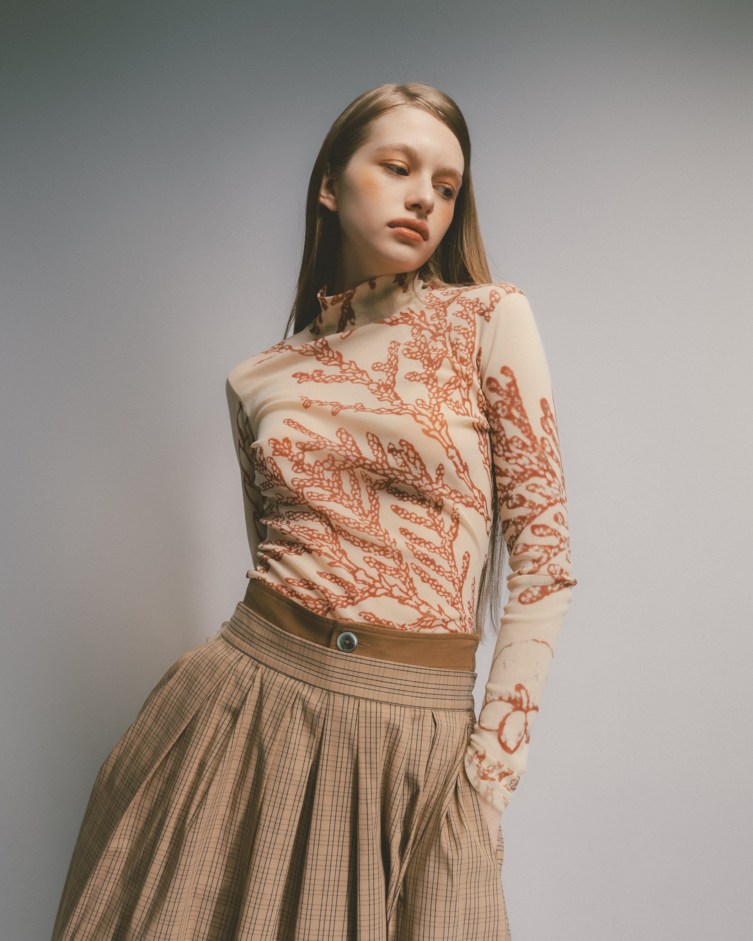 UUIN從阿里山聞名世界的日出雲海奇景中提煉色彩,將暮白、天藍、湖綠、鵝黃、啞灰....各種雲霧與日光交錯後所產生的色彩混搭在一起,秀場上模特兒罩上多彩的雲霧面紗,身著俐落的版型搭配著精緻的面料,為整個系列增添多彩新型態的時尚風格。