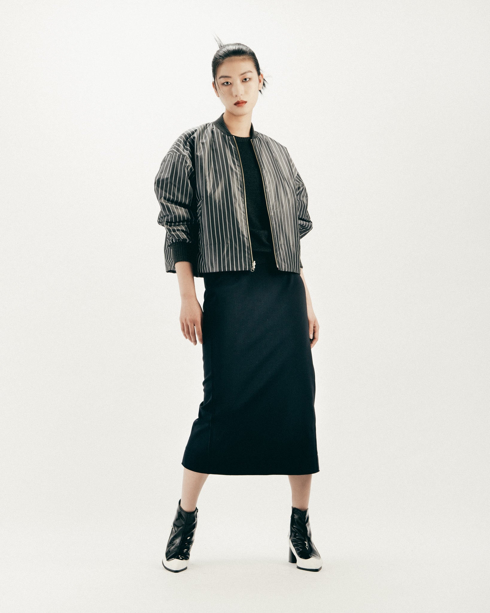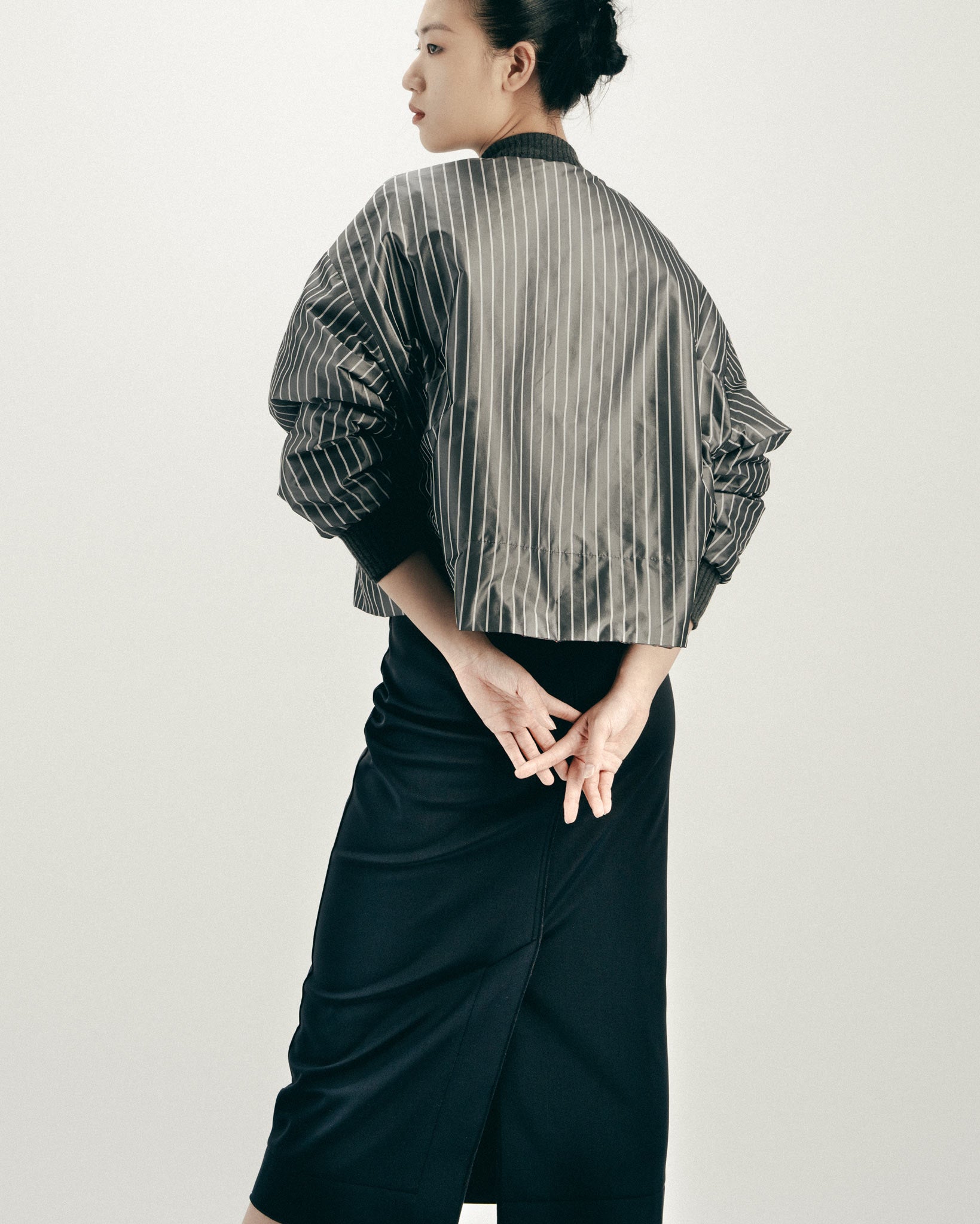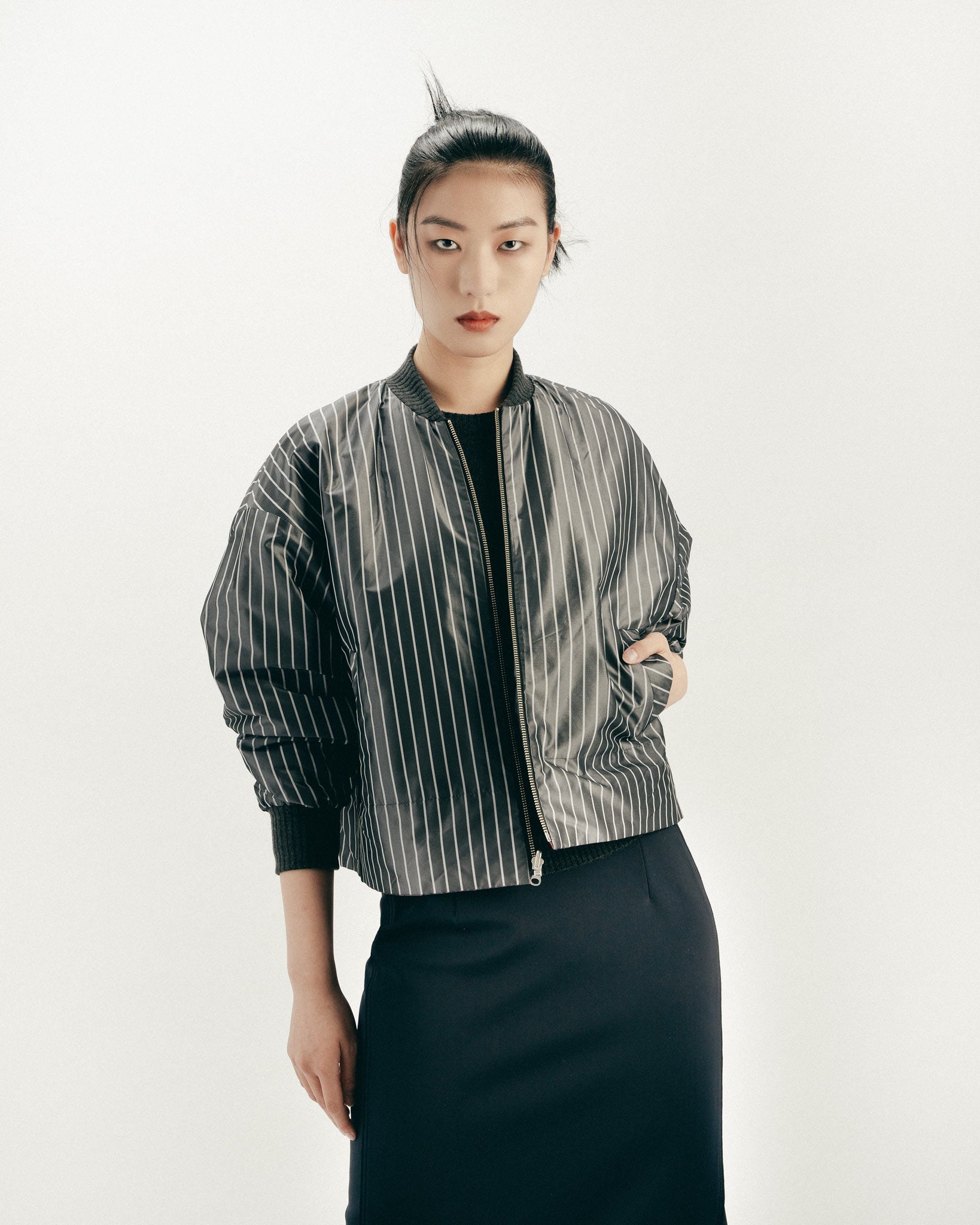 秋冬經典飛行外套,保留了傳統的短版剪裁,運用內外不同色的條紋,雙色雙面不同穿搭,布料材質為高撚度條紋真絲,夾層中含有3M等級輕鋪棉,好穿保暖零負擔。