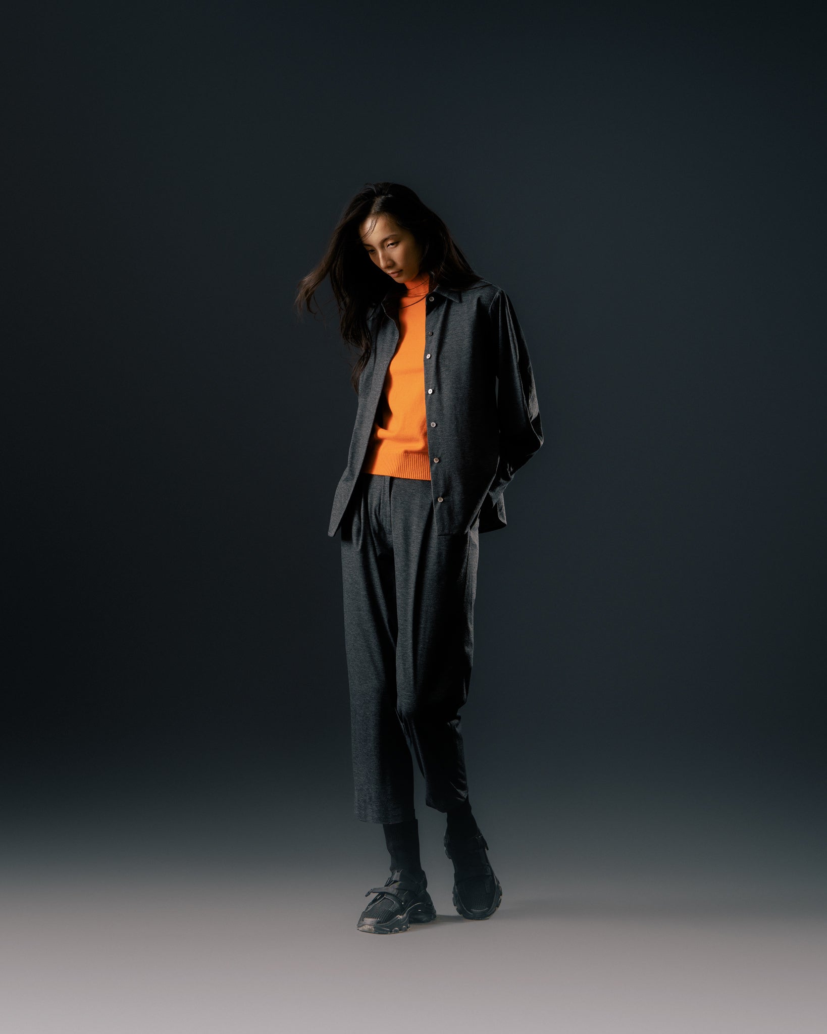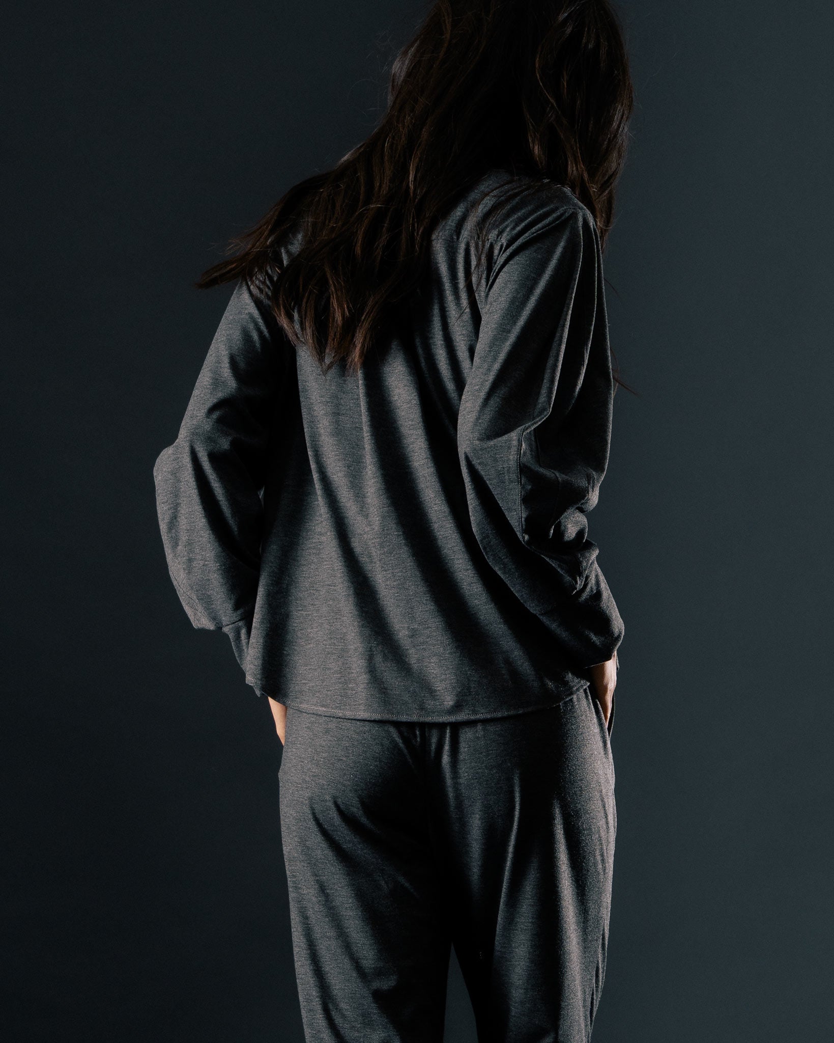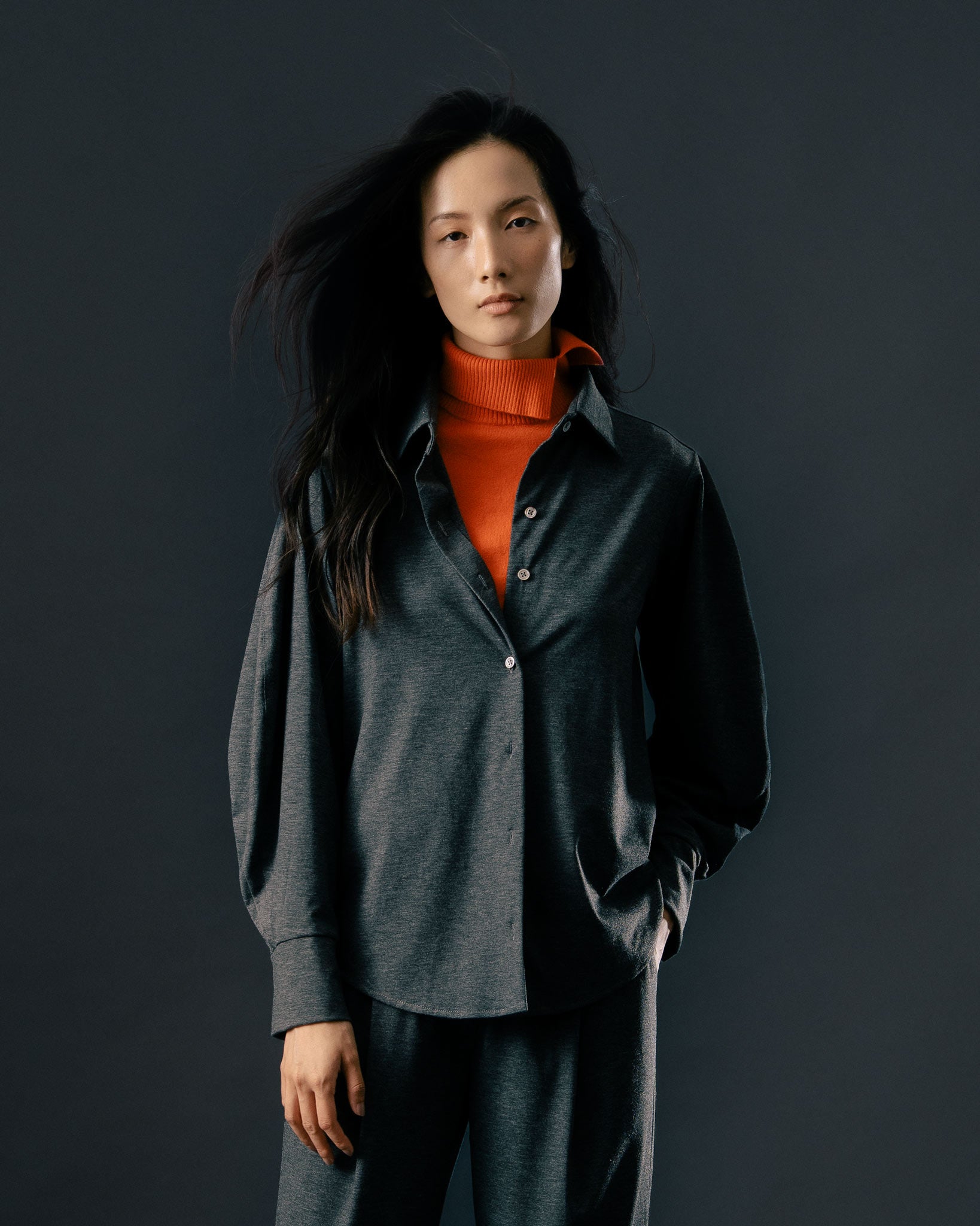 經典素面的黑色款式,是日常中的百搭選擇,無論單穿或作為內搭都適宜。選用富有彈性、親膚的純棉面料,帶來柔軟舒適的穿著體驗。袖身特別設計為寬袖剪裁,跳脫一般制式襯衫輪廓,展現自在不拘的風格。下擺採圓弧設計,為整體造型增添活潑感。背部橫向剪接與活摺A字輪廓,營造自然垂墜的鬆弛感,兼具修飾效果,讓各種體型都能穿出自信與風格。