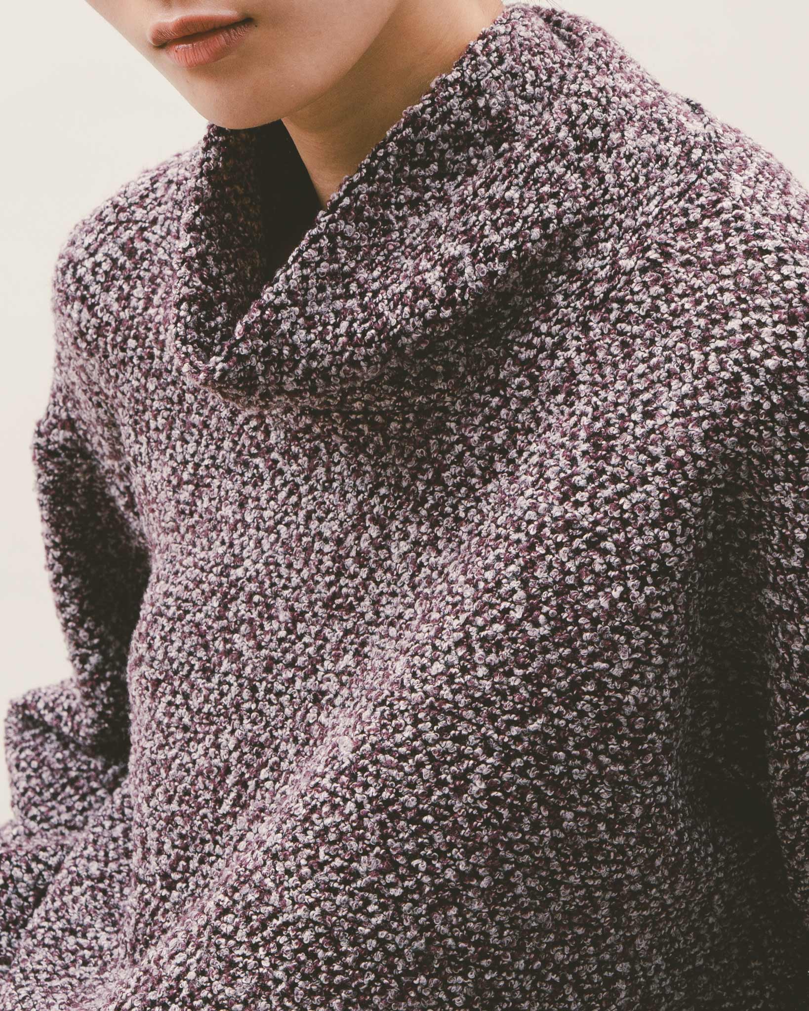 低調高雅的紫色,結合高領設計與袖口剪接細節,為秋冬季節帶來溫暖與造型兼具的穿著體驗。版型採用休閒衛衣輪廓,輕鬆自在中又不失層次感。獨特的圓圈組織毛衣面料,展現別緻可愛的質地觸感,為日常穿搭增添溫柔趣味。