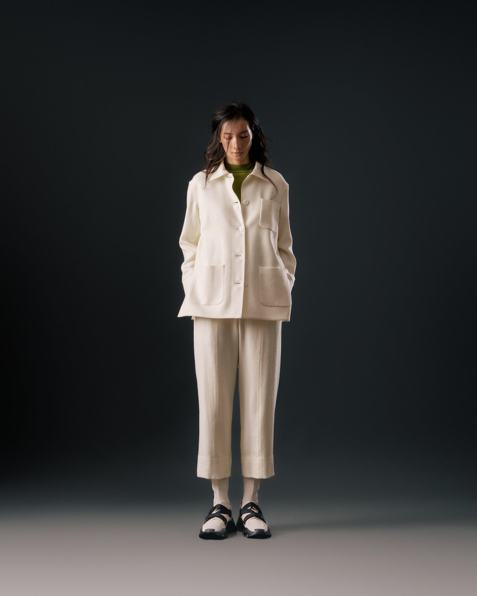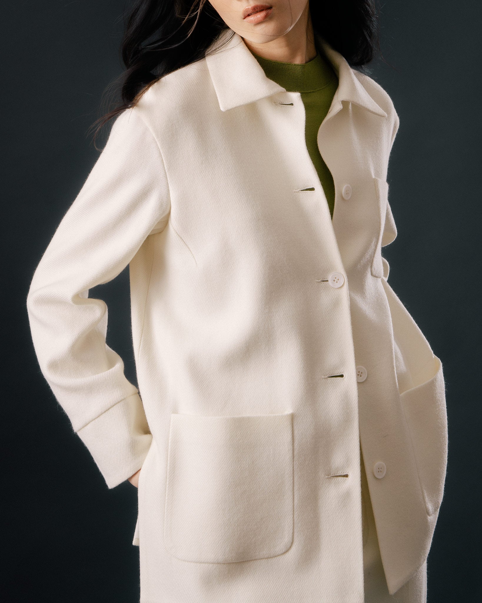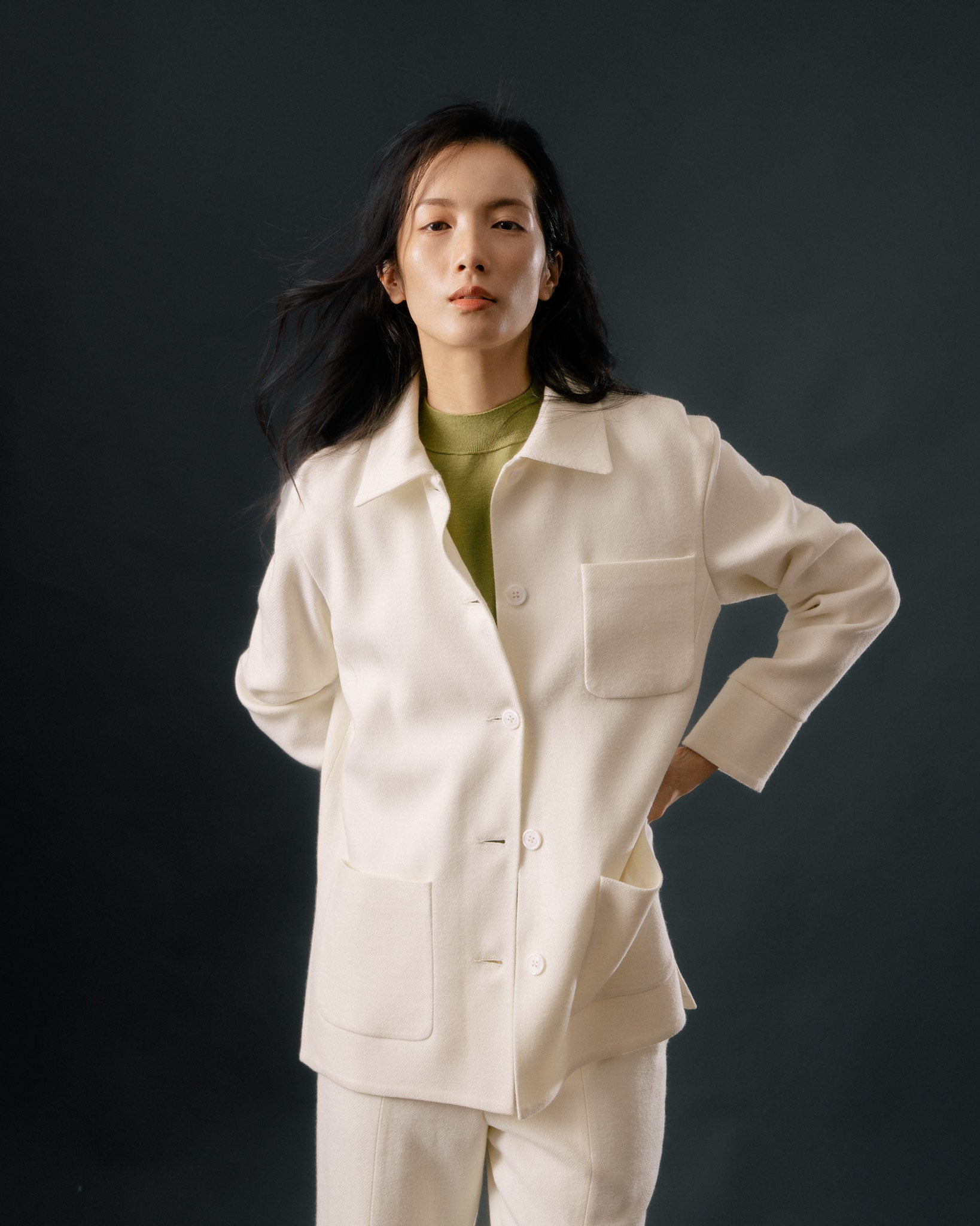 少見的純白羊毛休閒外套,以襯衫外套版型打造,結合俐落線條與柔和氛圍,特別適合小巧身形,穿上立現白皙膚色與優雅氣質。翻領與雙口袋設計為整體增添造型亮點,簡約中帶有細節巧思。內裡貼心設計不刺膚,提升穿著舒適度,羊毛材質輕盈保暖,是秋冬季節不可錯過的溫柔單品。無論單穿或層搭,都能展現恬靜可愛的風格魅力。