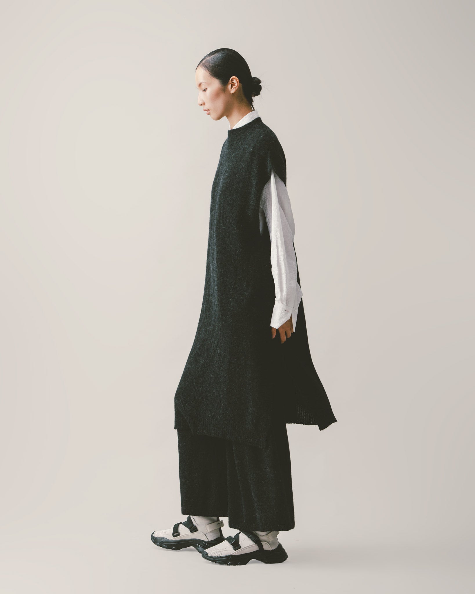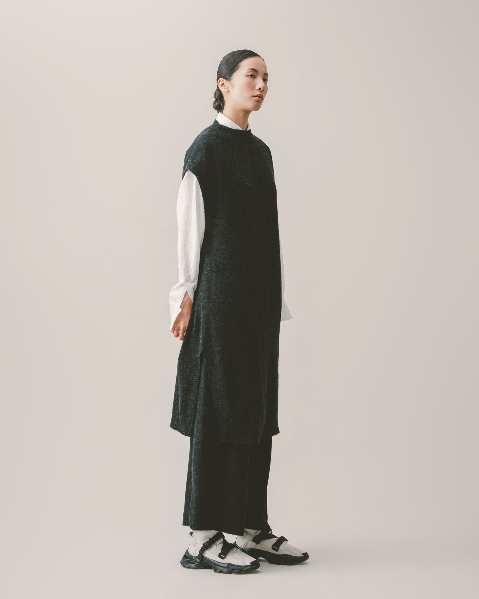 選用親膚羊毛混紡面料,以一體成型織法製成,手感柔軟不刺膚,保暖同時維持輕盈穿著感。簡約的休閒褲版型,兼具舒適與實穿性,特別適合日常生活中的多種穿搭場合。