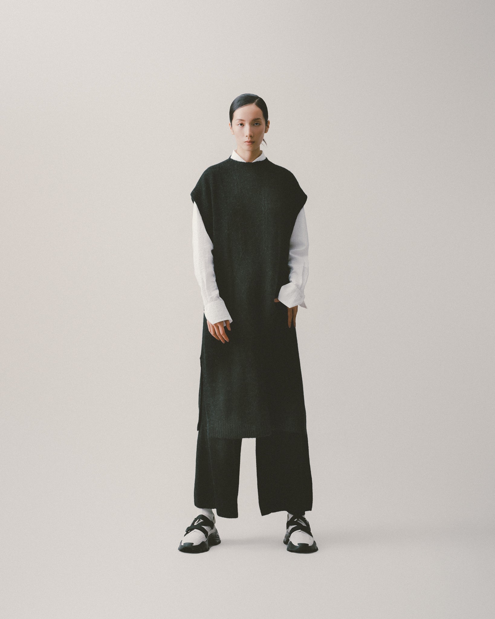 可與同系列上衣成套穿著,輕鬆展現一致的質感風格,整體造型更顯俐落時尚。