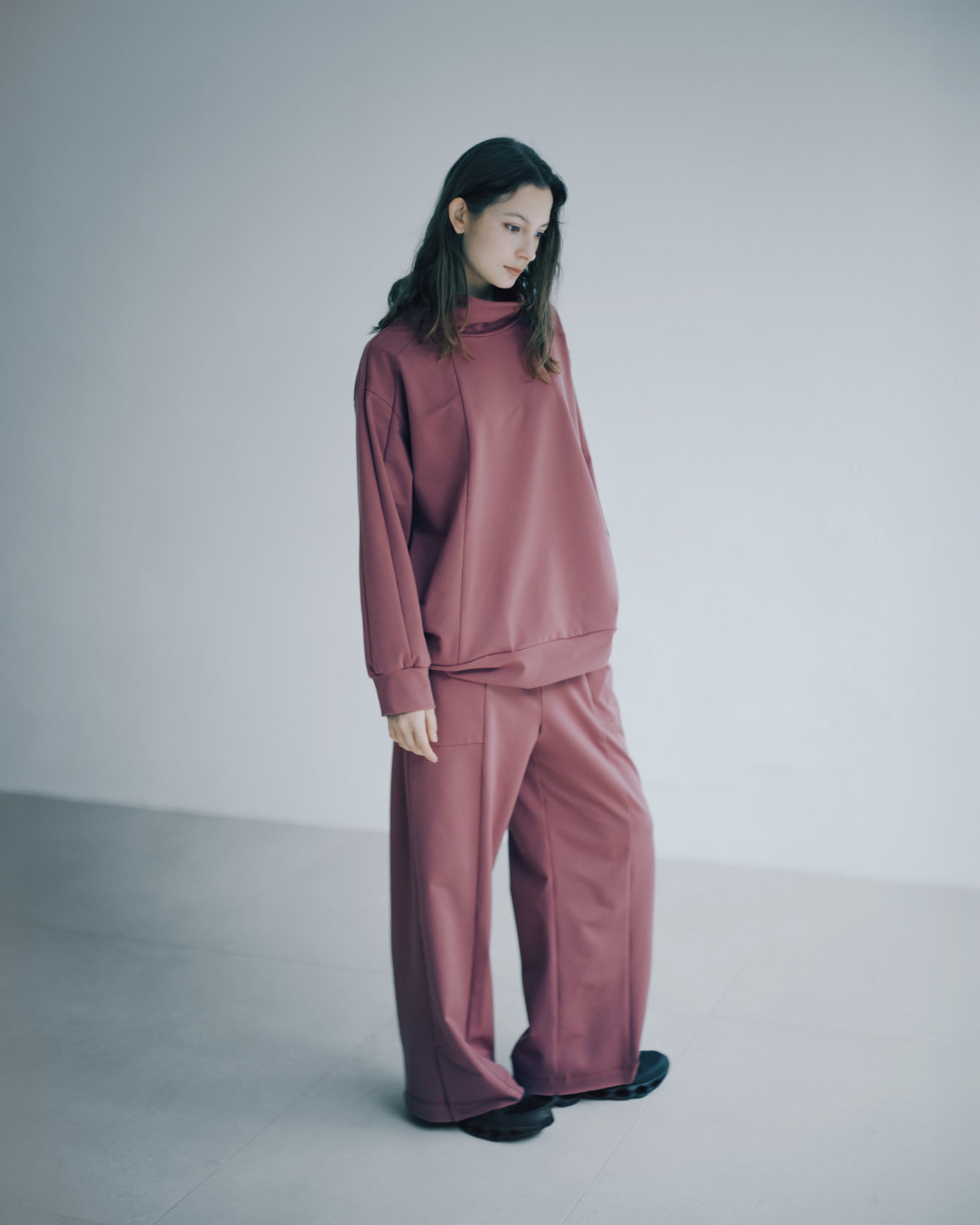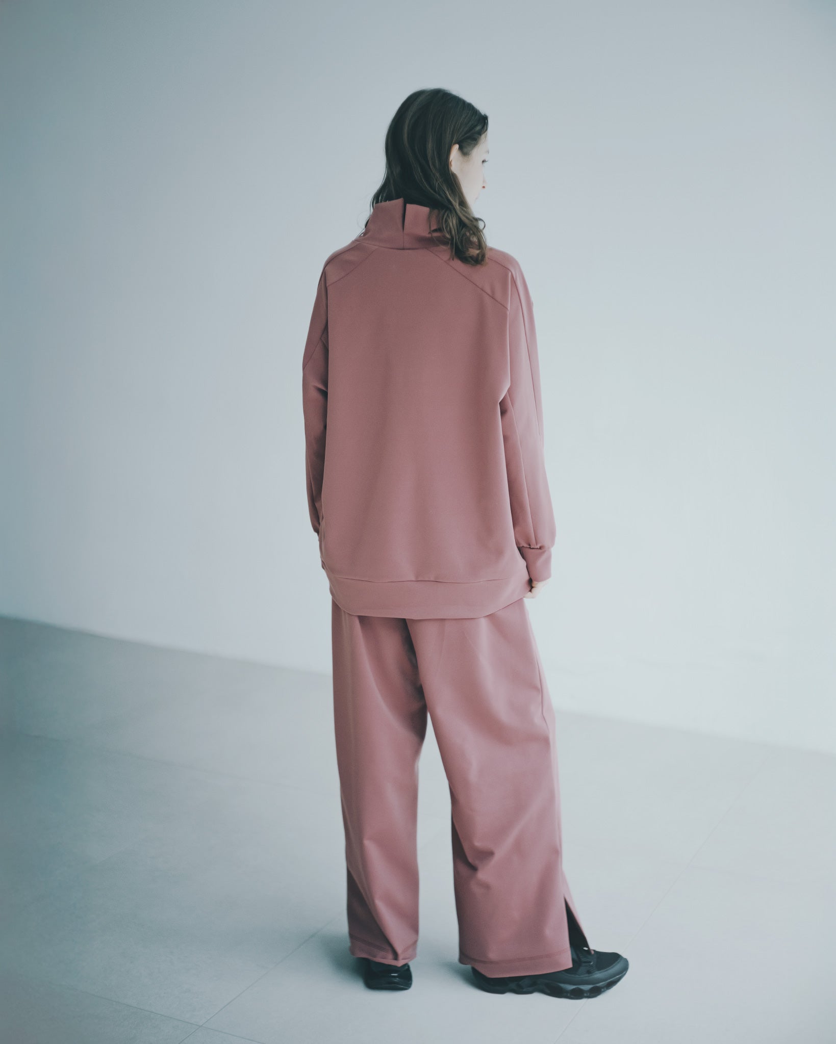 選用親膚舒適的面料,結合日常休閒風格與精緻工藝,展現出隨性卻不失格調的設計語言。褲管的橫向拼接切線,增添整體層次,細膩的分割比例更能拉長腿部線條,營造出修長的視覺效果。彈性鬆緊褲頭設計,便於穿著,亦能完美適應不同身形,提升穿著舒適度。褲腳的小開衩細節,提升活動方便性。