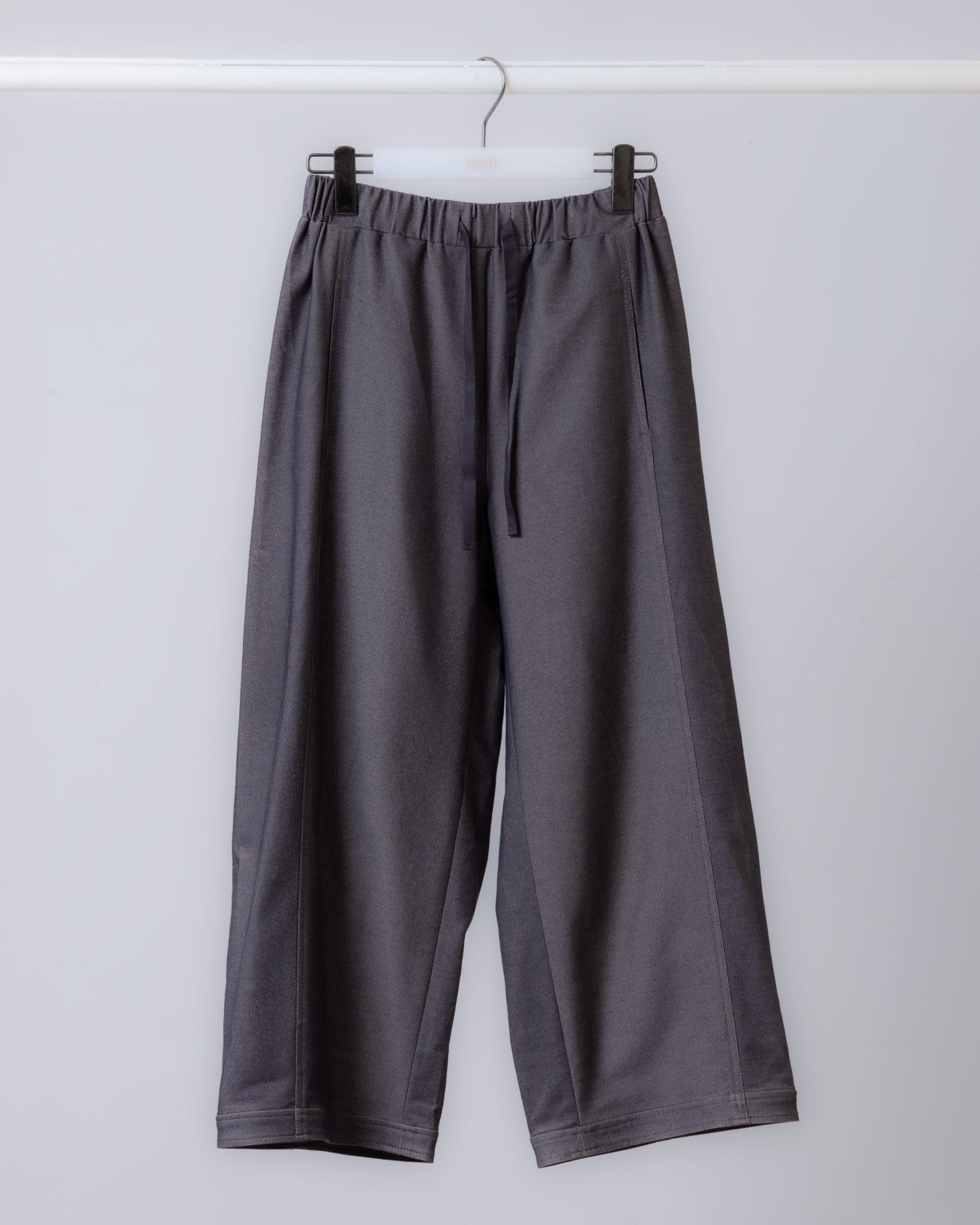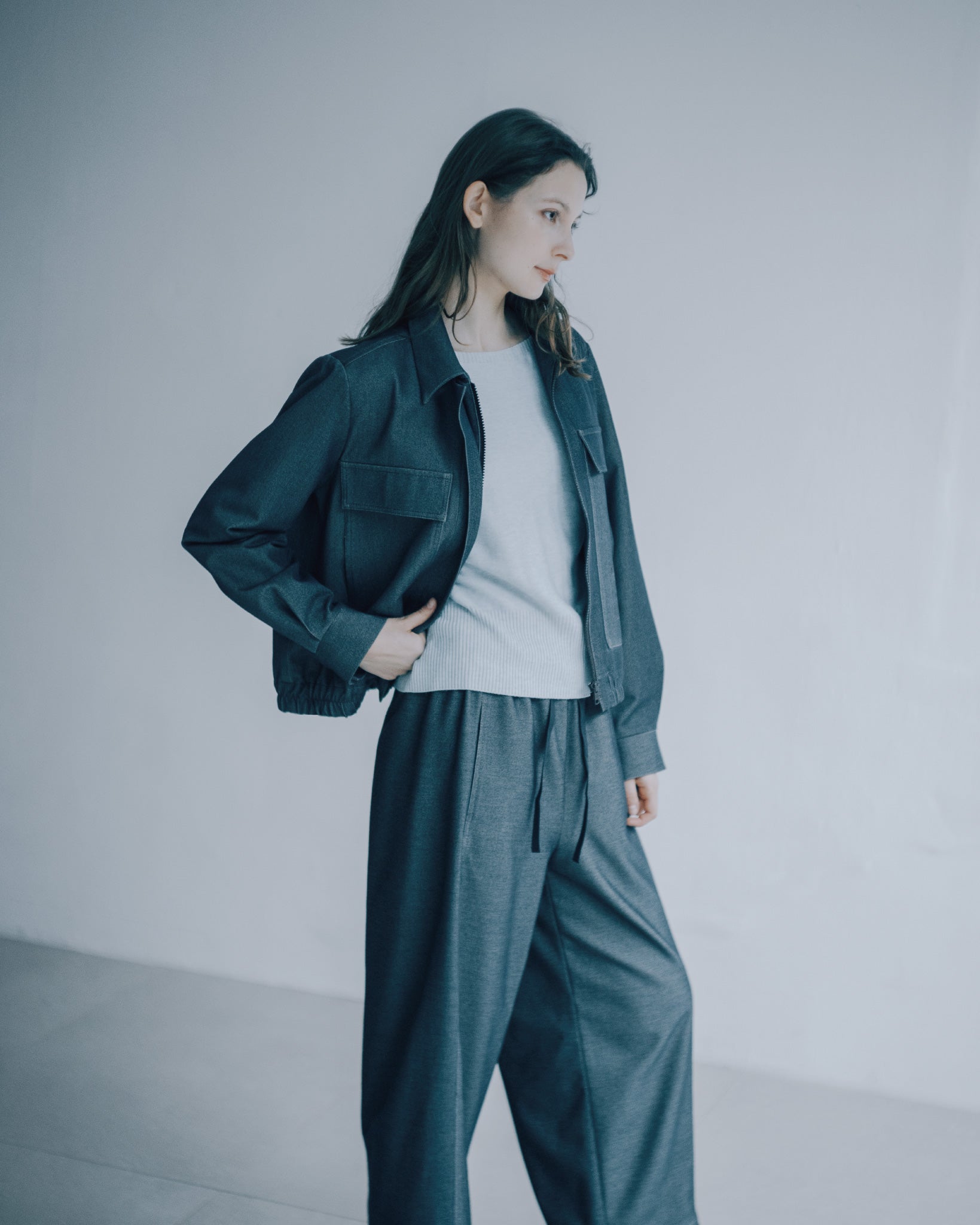 選用輕薄且獨具特色的黑咖牛仔布,整體版型以筆直線條為主軸,強調輪廓線條的簡約設計感。腰頭鬆緊帶搭配抽繩調節設計,能依照個人喜好調整鬆緊程度,提升穿著包容性與舒適度。褲腳的收編設計強化整體結構,下擺維持重量感,不易翻捲變形,為日常方便搭配的百搭款式。