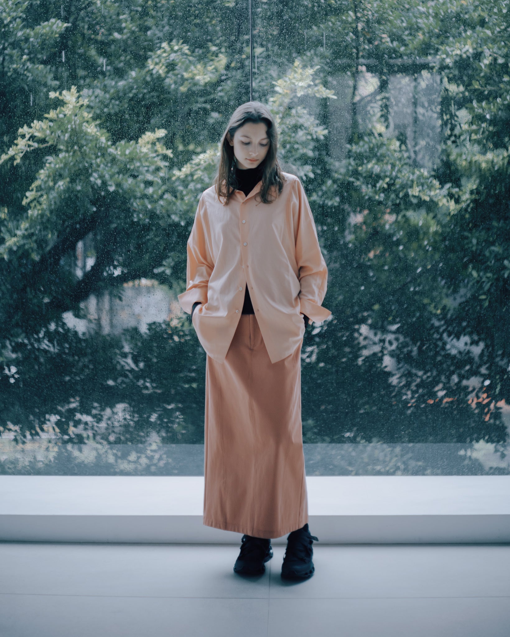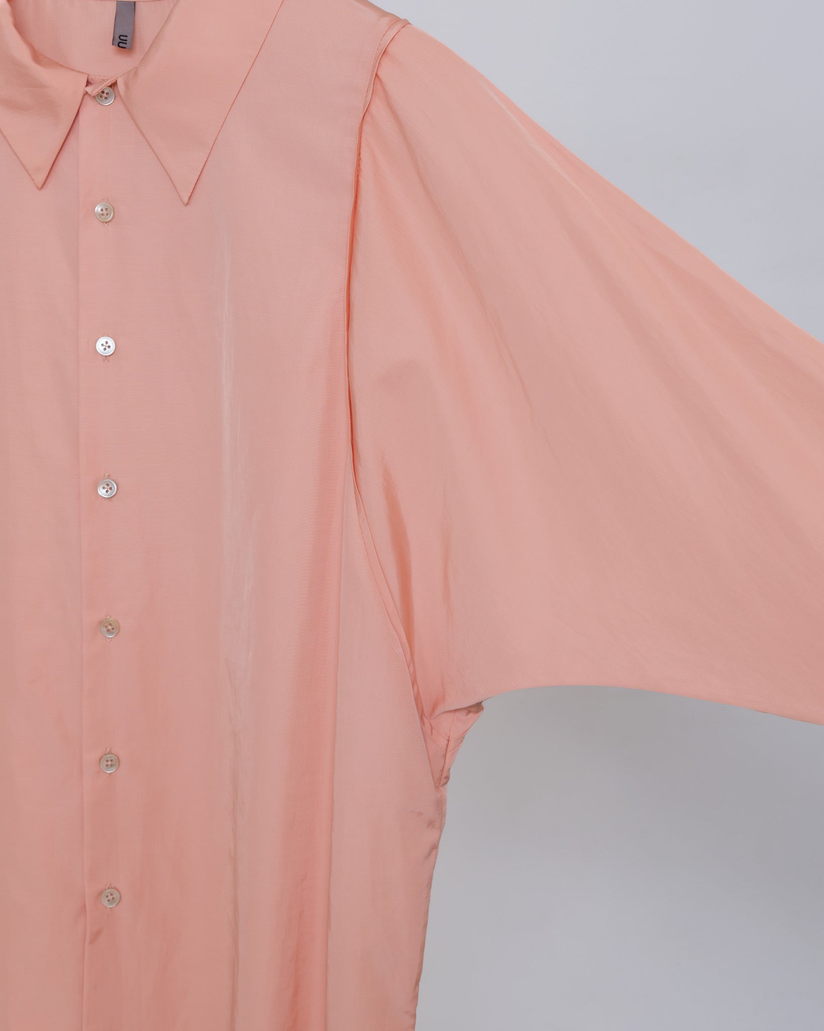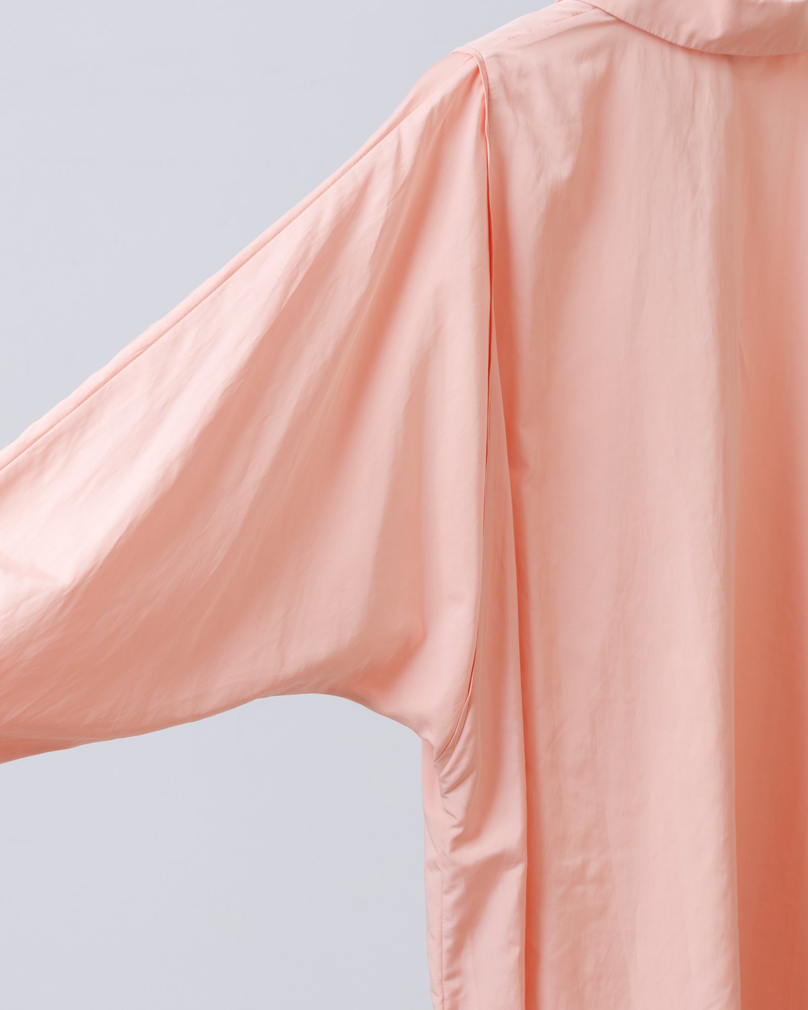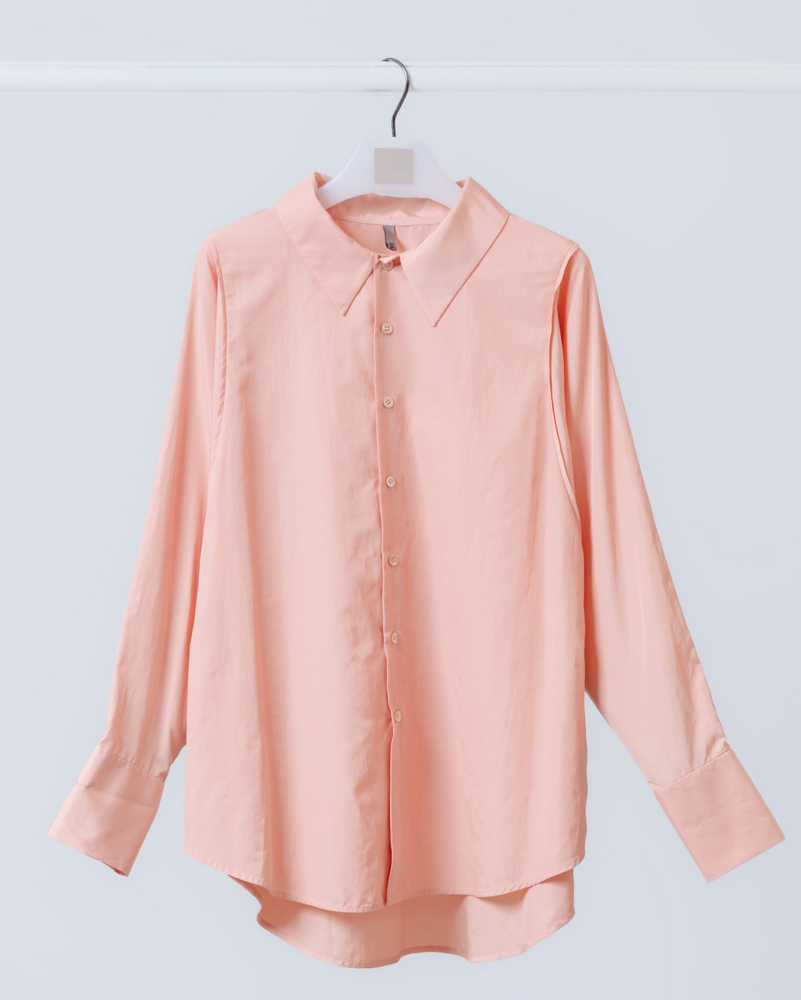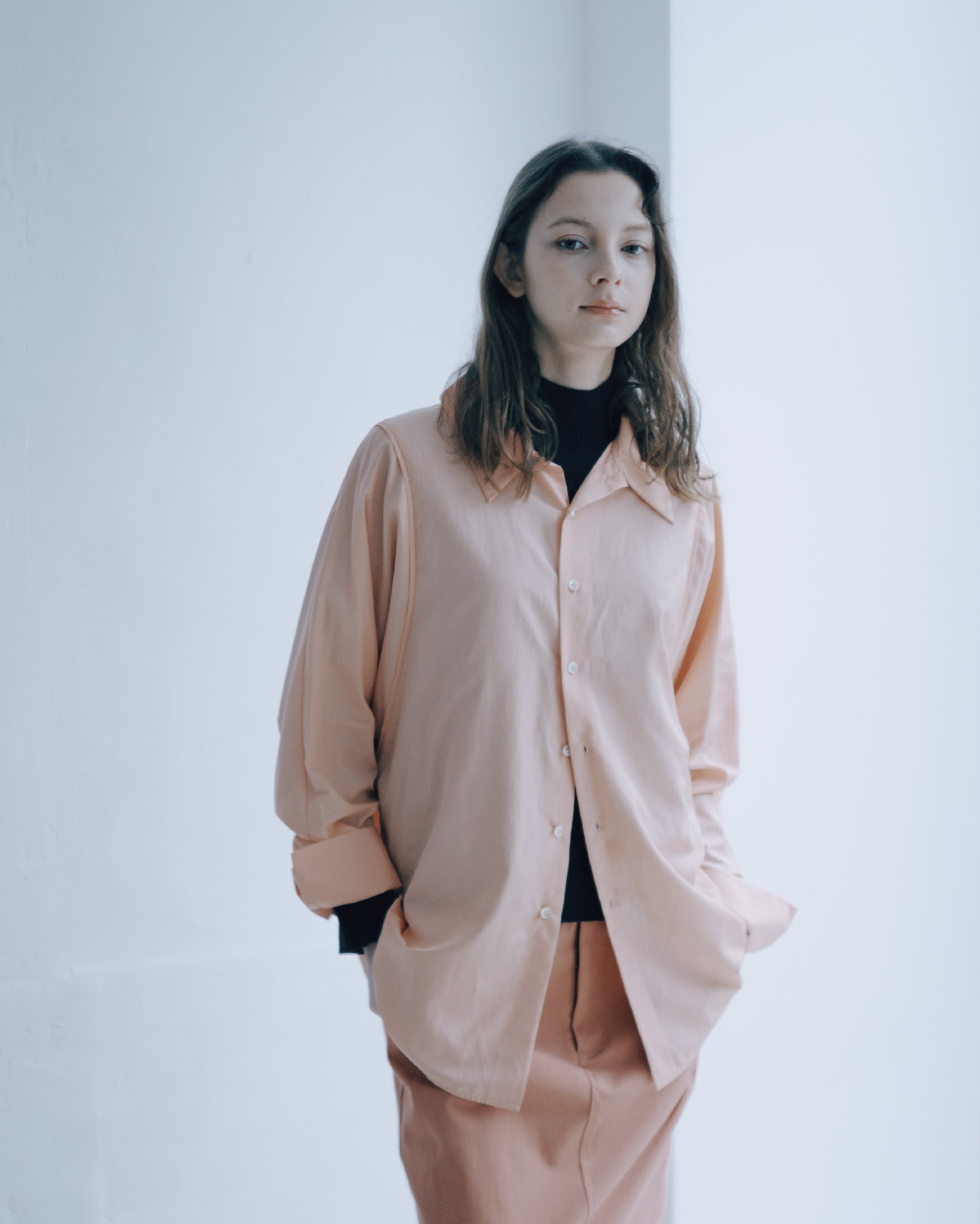 將背心式的切線融入襯衫設計,呈現假兩件的視覺層次,選用親膚絲滑的面料,手感細緻滑順,著感輕盈舒適。圓弧形的下襬使整題更加柔和,溫暖柔和的粉橘款如冬日暖陽,帶來一抹明亮柔和氣息,可成套搭配同色系服裝,打造優雅穿搭。