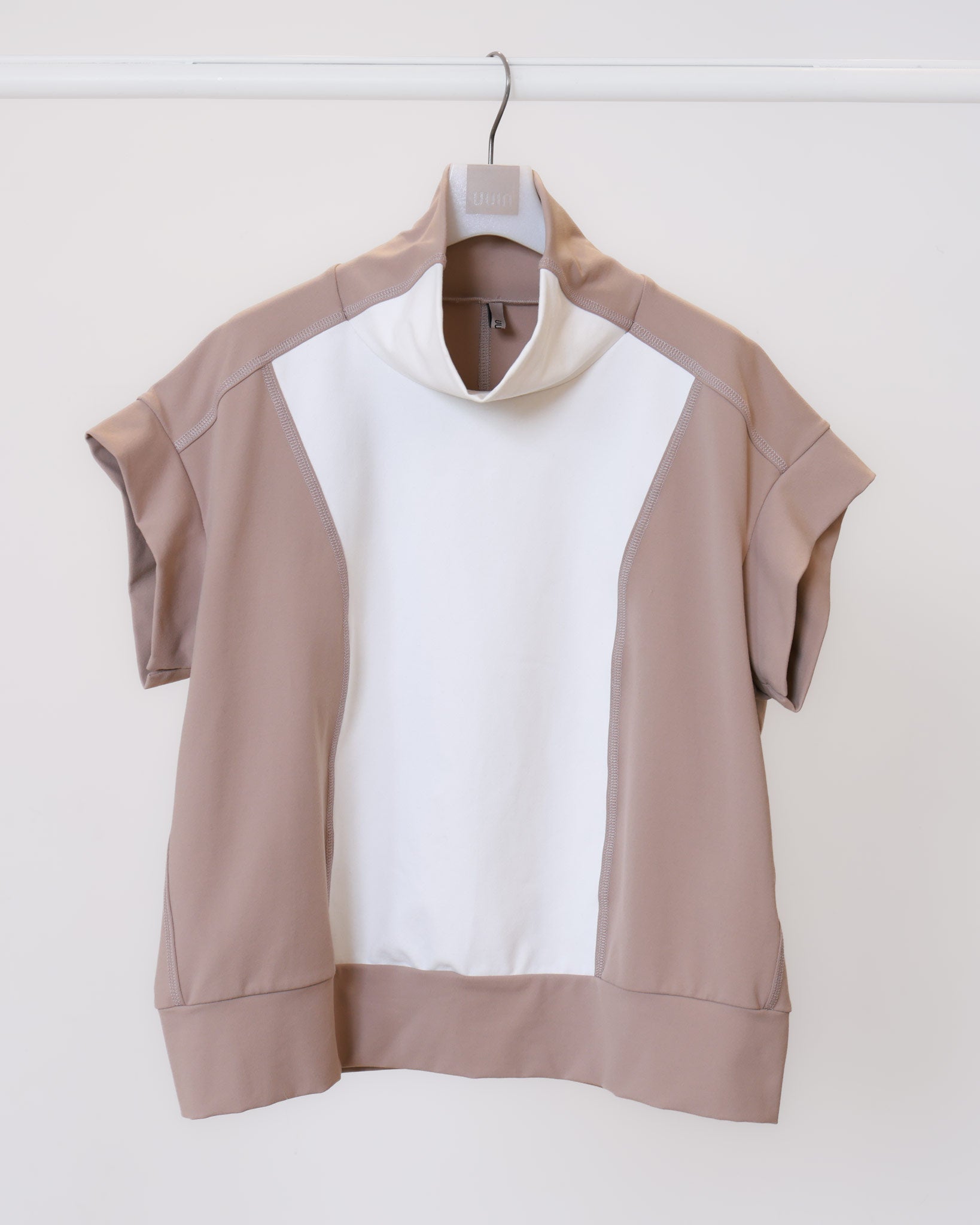 撞色高領剪接無袖上衣