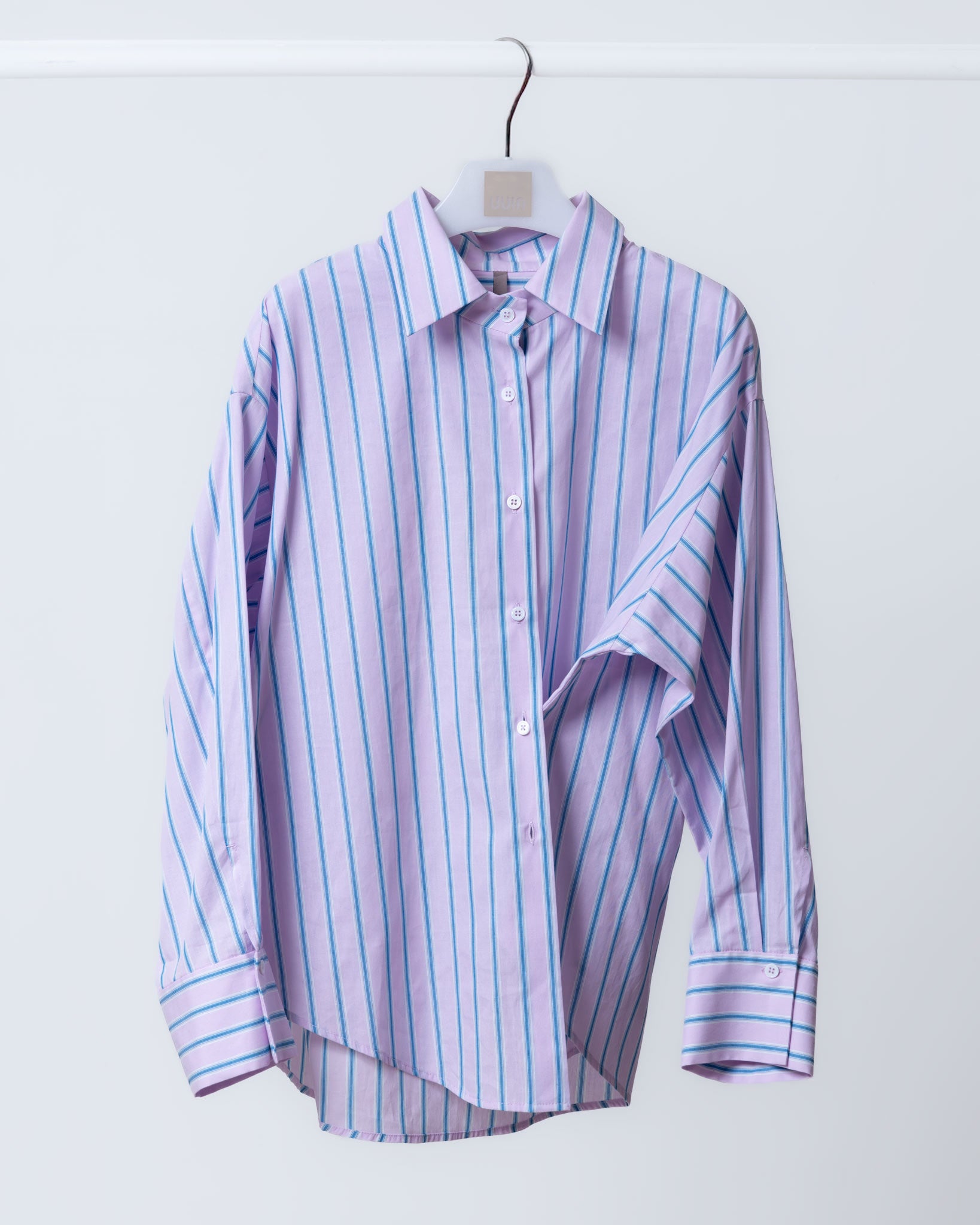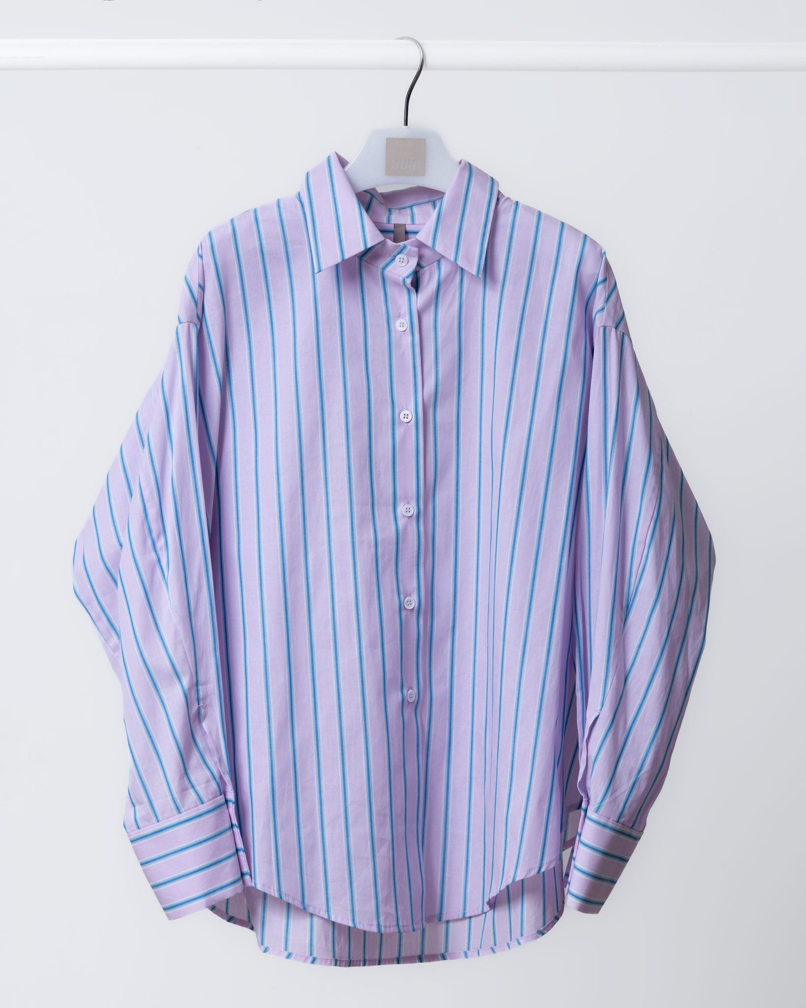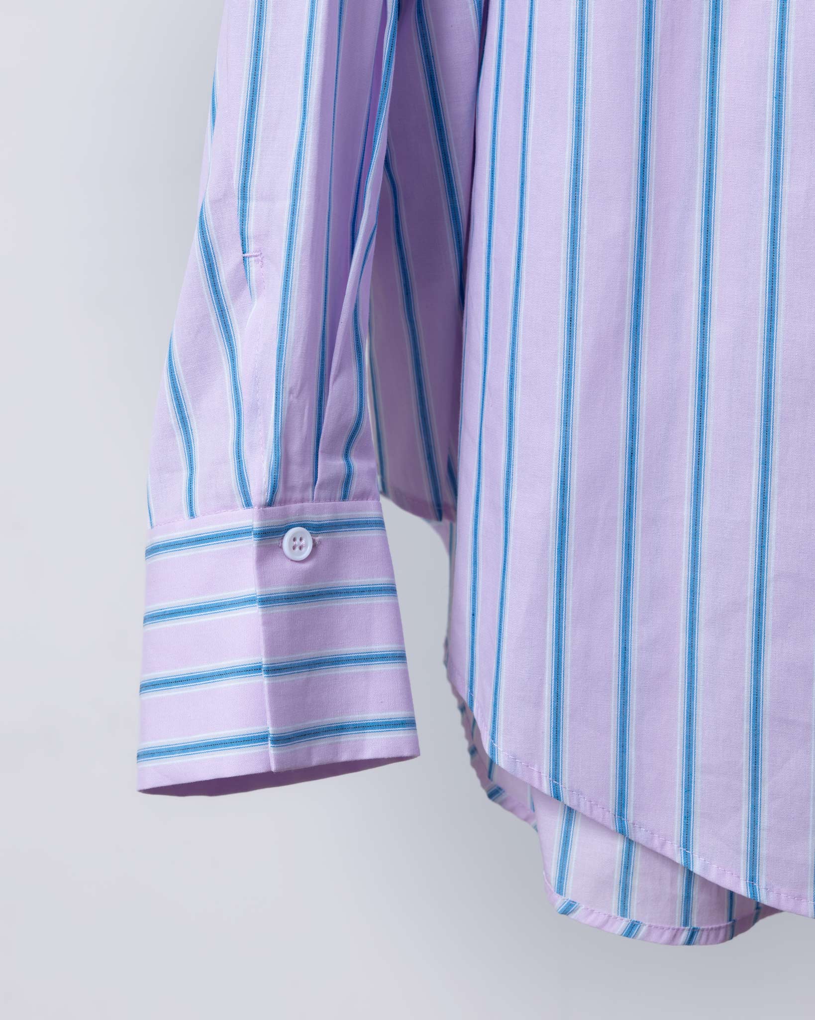 細膩的條紋與俐落剪裁,搭配寬鬆袖型整體呈現俐落時尚感,顯現唯美與氣質感。