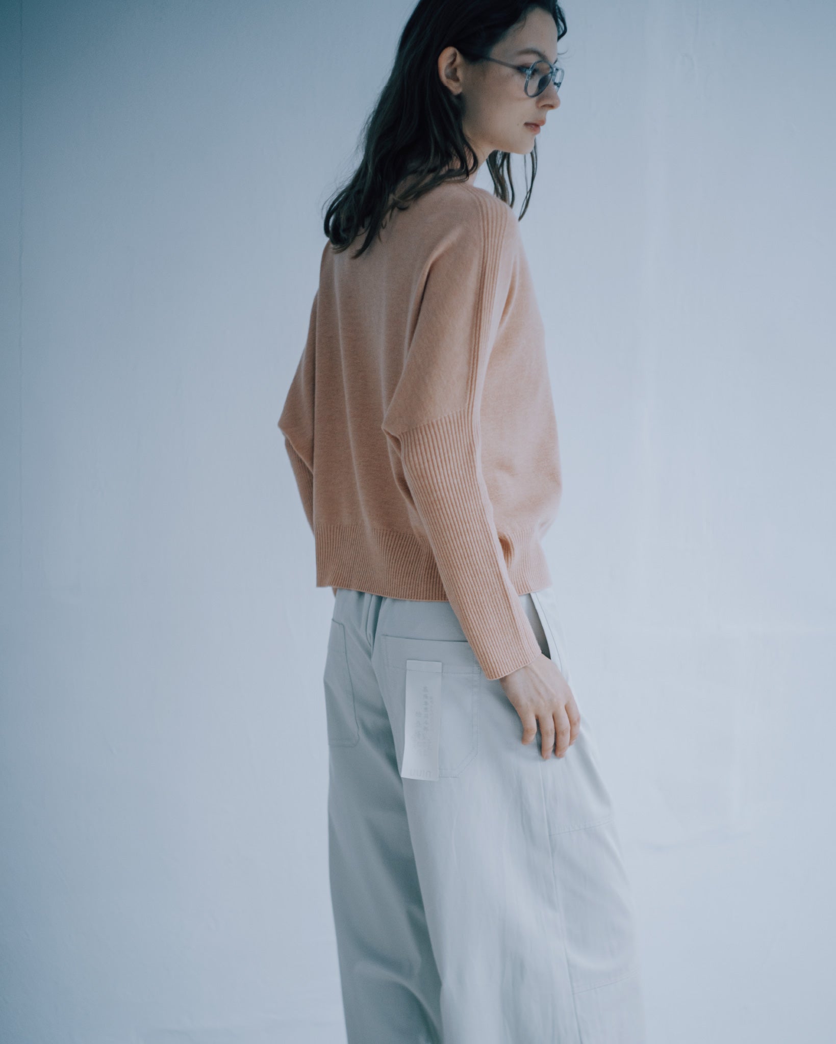 採用WholeGarment一體成型無縫針織技術,能完美貼合身型,提供極致舒適與俐落廓型。下手臂處設計羅紋的縮口設計,輕鬆貼合手臂,具修飾效果。袖身的肩部延伸羅紋細節,為海軍繩股組織飾邊,為服裝帶來細緻變化,寬鬆的著感可容納多種身型,皆達到修飾效果。