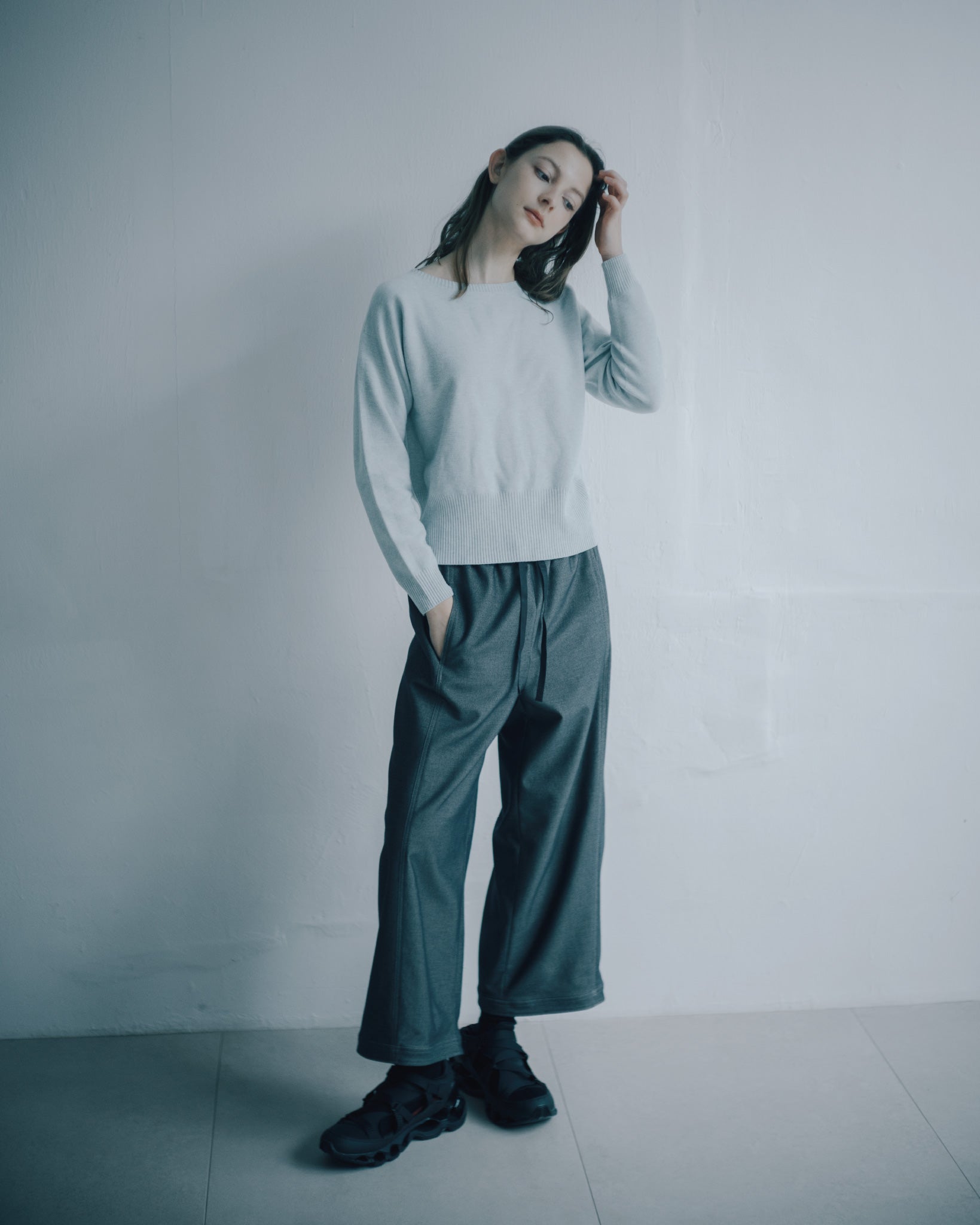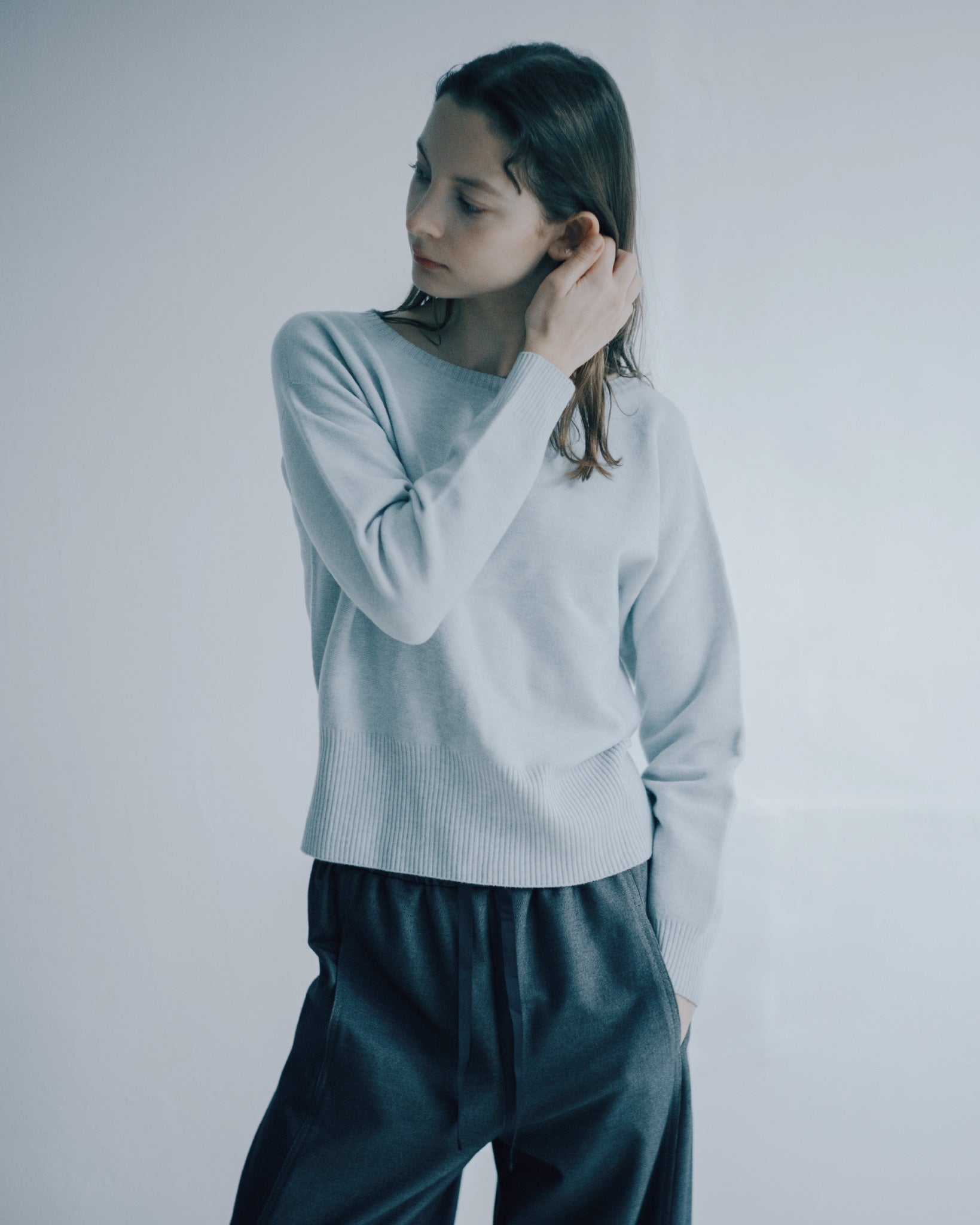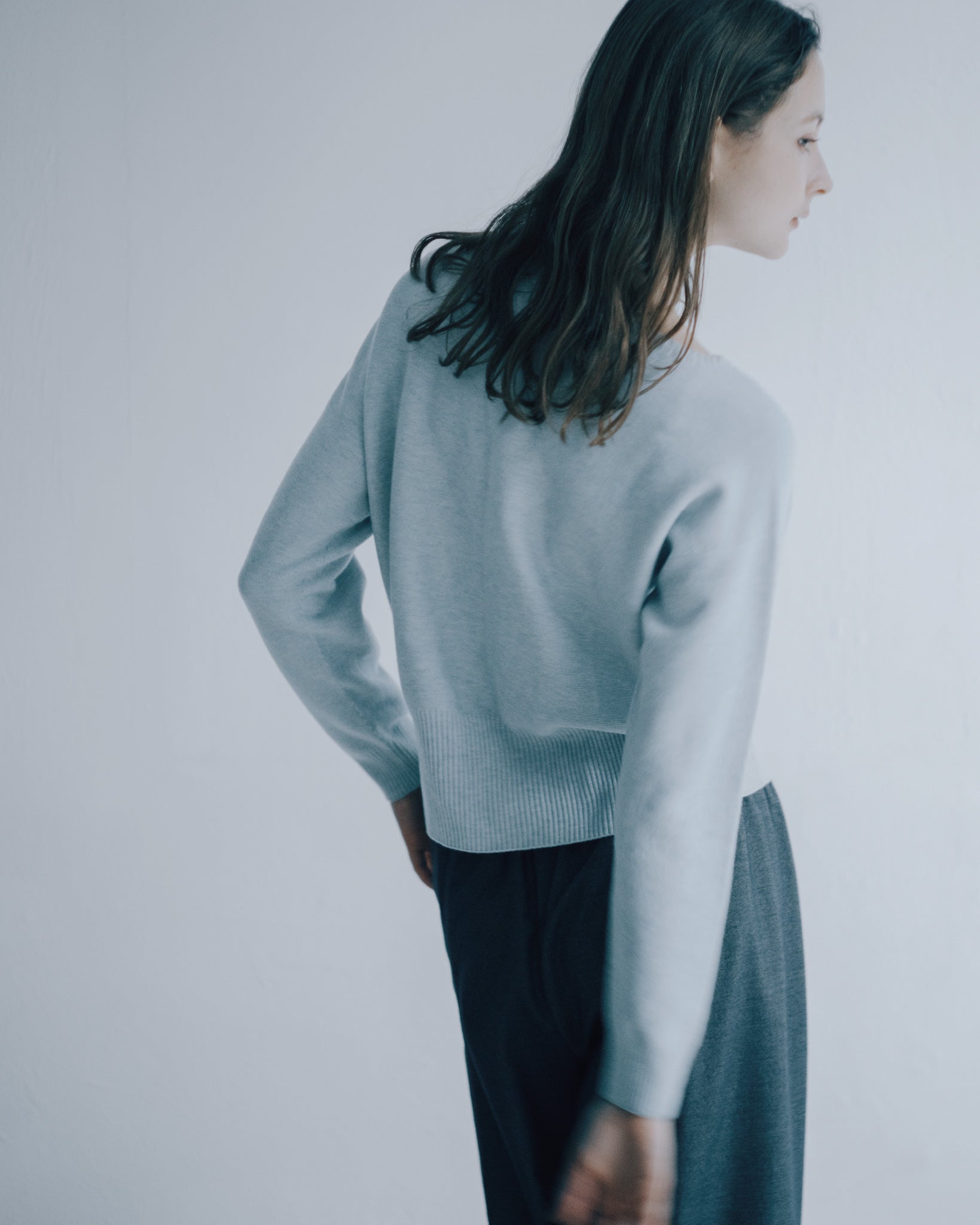 採用優雅船型領口設計,延展至頸部的線條勾勒出柔和且知性的氛圍。以令士組織織法製成,具有挺度的針織結構使布面更為紮實有型。選用環保纖維與友善羊毛成分,不僅保有針織品應有的彈性與舒適性,更提升耐穿性與不易變形的特性,並實現對環境更友善的永續理念。