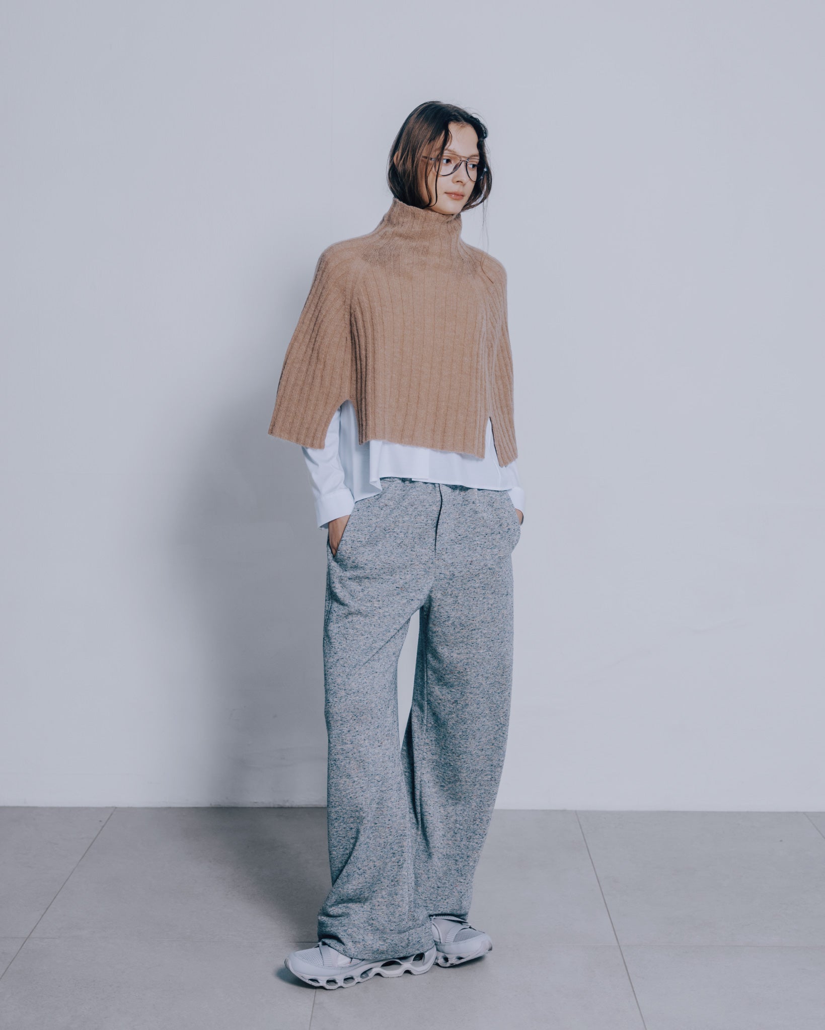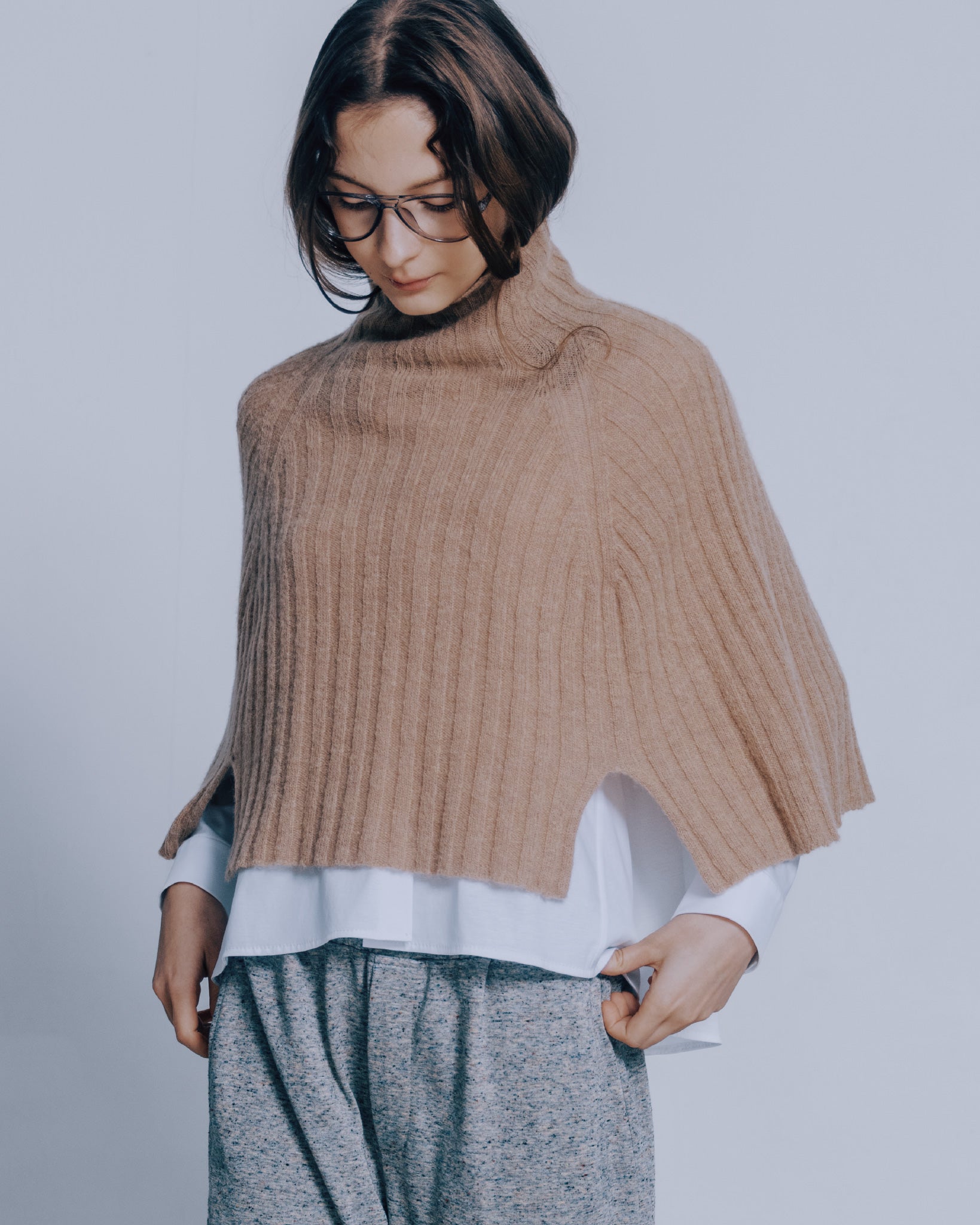 高領寬鬆針織斗篷(駝色)