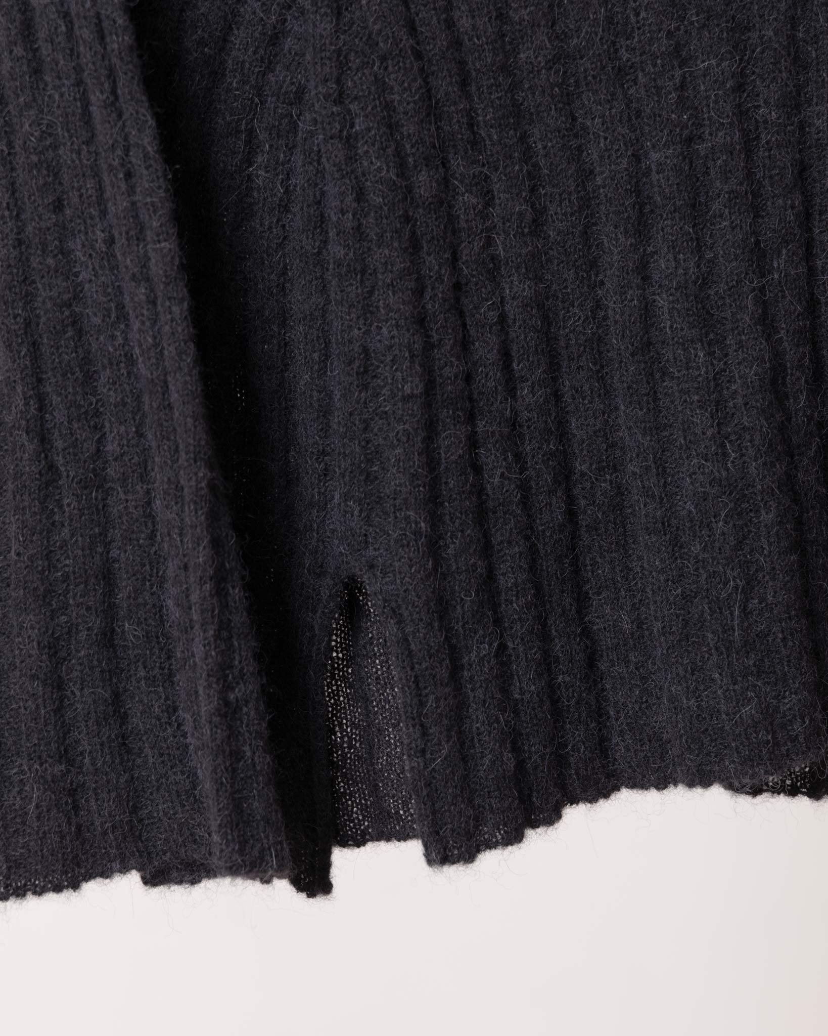 選用高品質皇家羊毛混紡面料,兼具保暖與體溫調節特性,從容面對多變氣候。寬鬆版型修飾身形,同時保留舒適自在的穿著體驗。高領以彈性羅紋編織呈現細緻線條,完整包覆頸部,提升整體保暖度。落肩設計柔化肩部線條,而立體垂直紋理則營造俐落修長的視覺比例。下擺開衩賦予更靈活的活動空間,也讓穿脫更加便利。