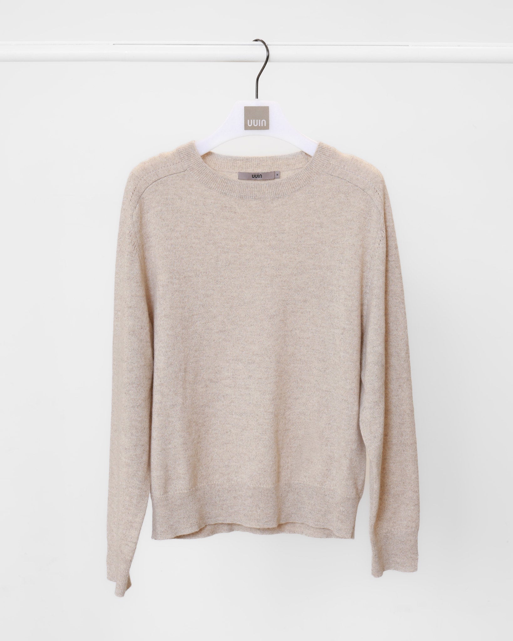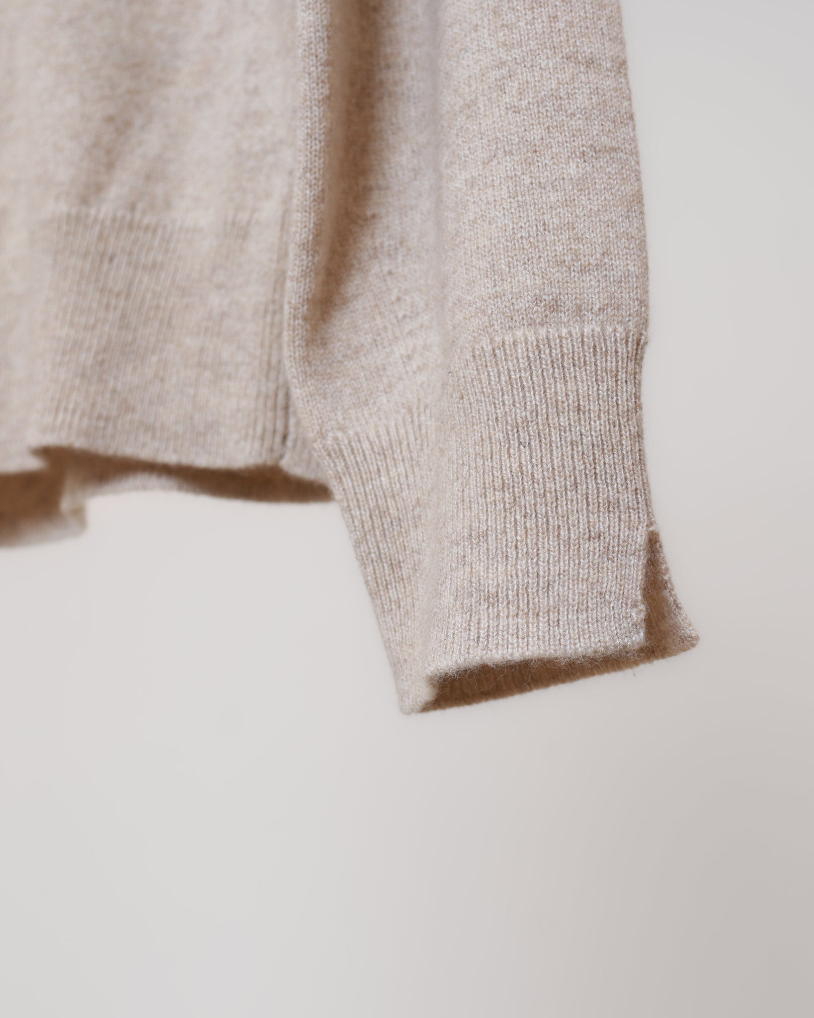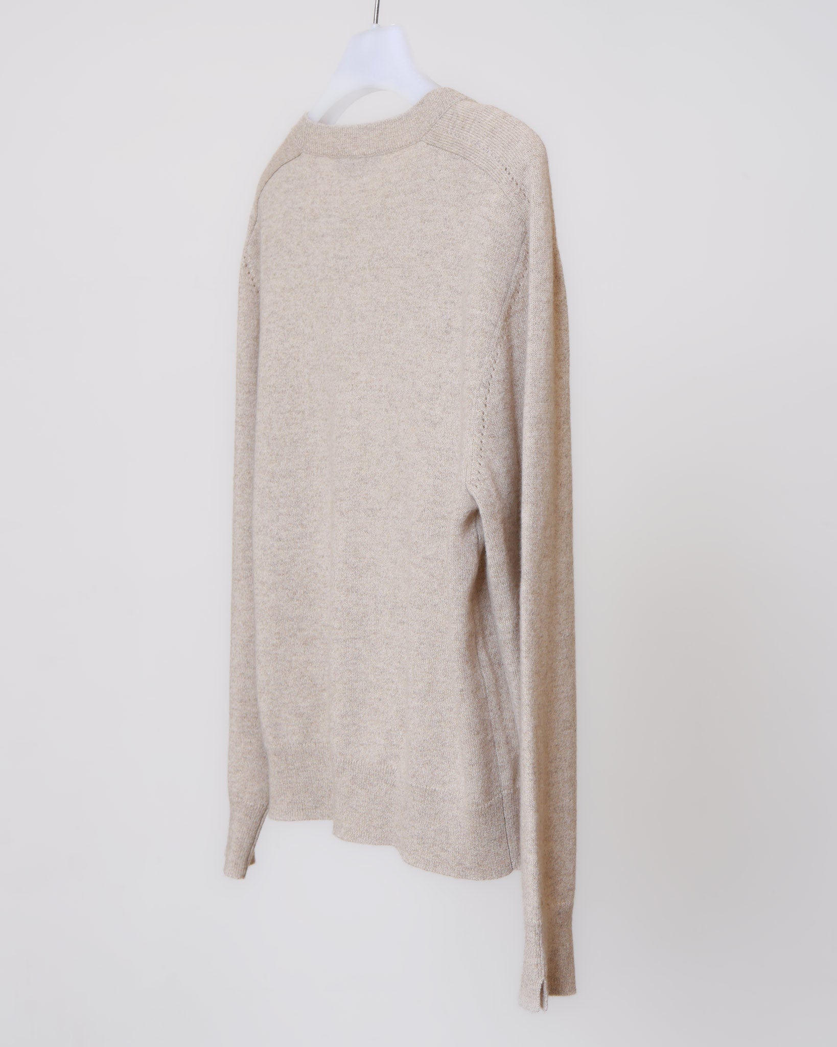 選用100%喀什米爾羊絨素材,親膚不刺的質地具保暖功效,微落肩的設計使肩部輪廓呈現自然放鬆的流暢線條,圓領的單層羅紋及下擺加寬設計,完美包覆並穩定整體,著用時保有微寬鬆感,能修飾身型線條,以簡單極簡的版型為核心,保有質感面料色澤。
