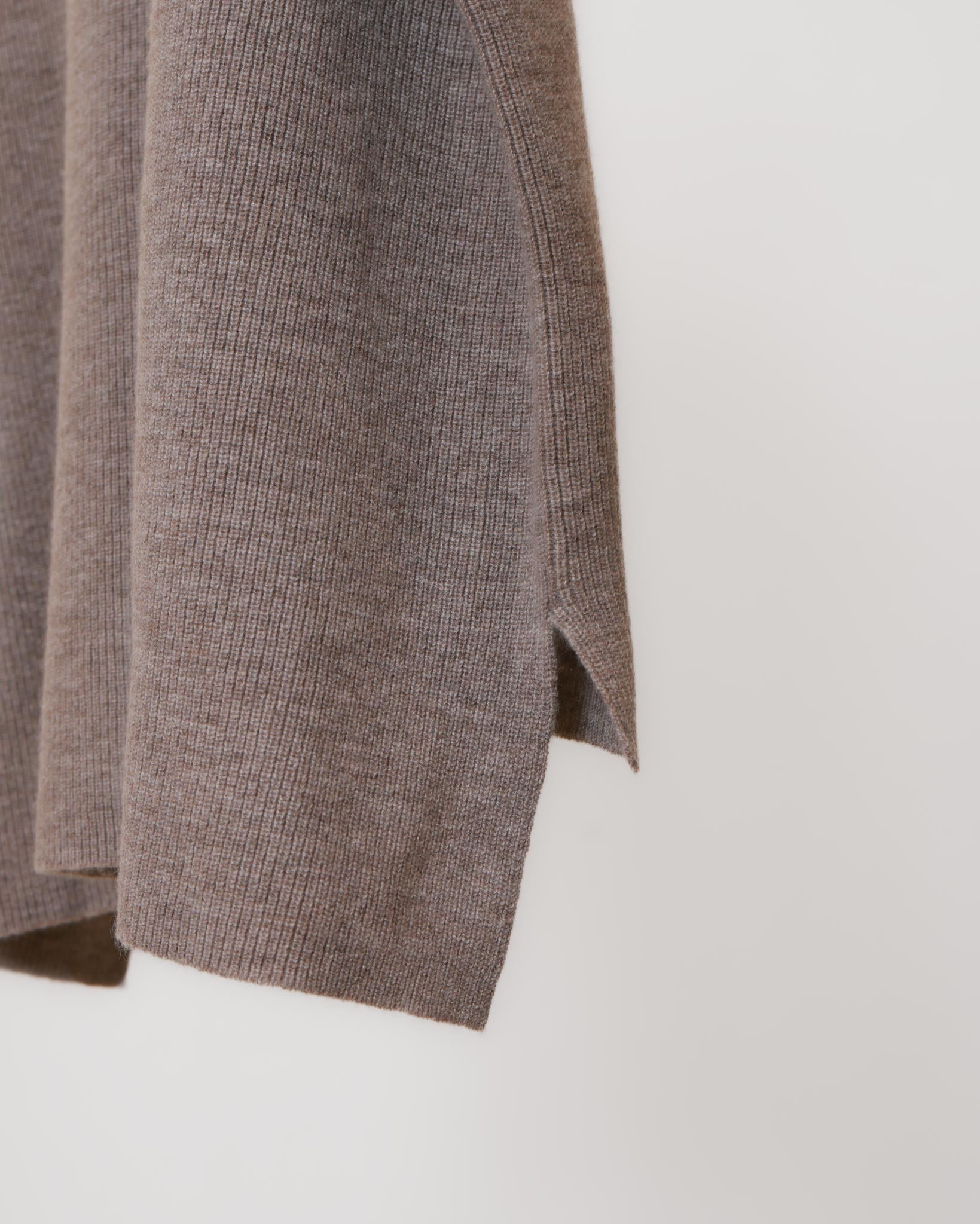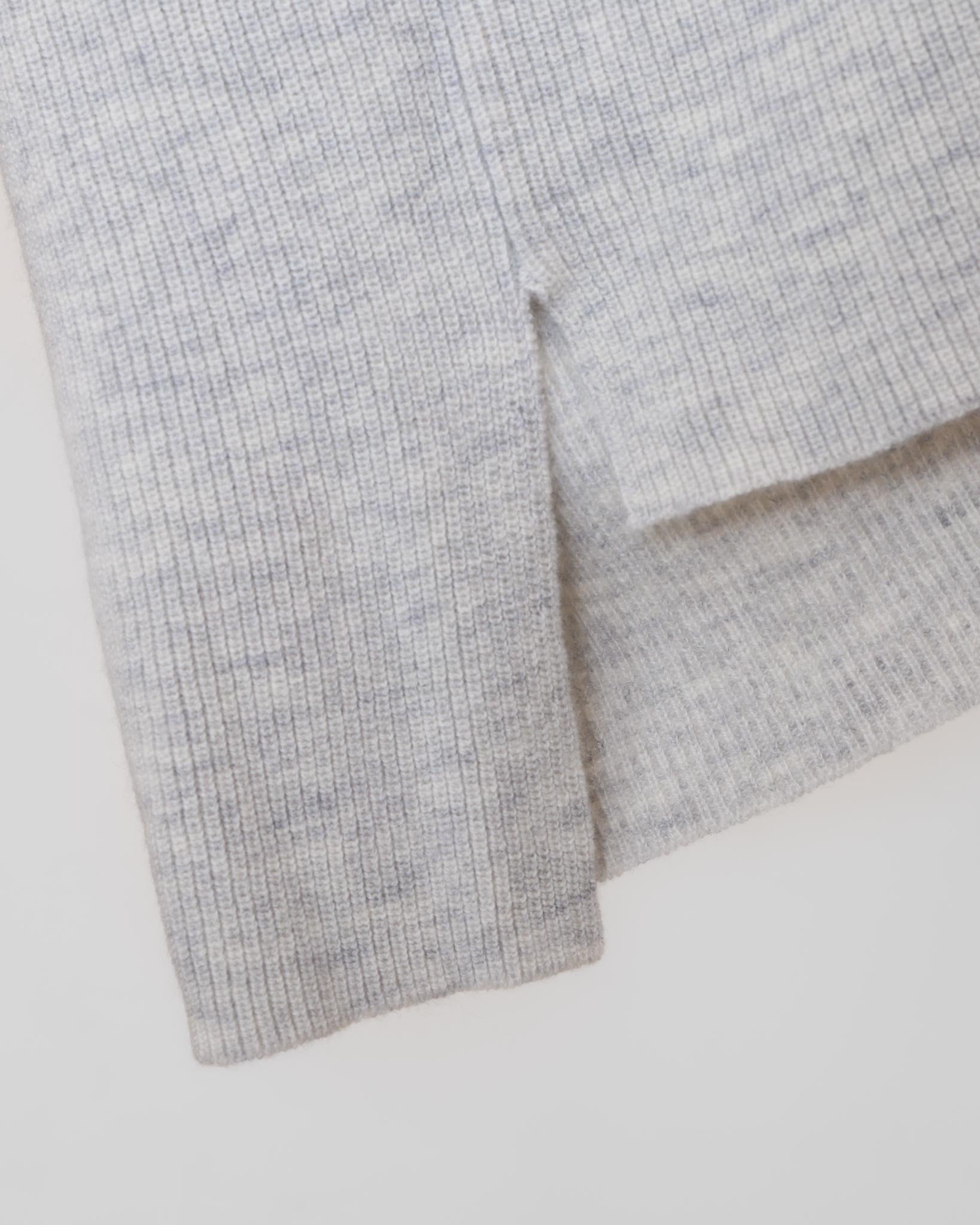 選用100%喀什米爾羊絨毛混紡,溫潤柔軟的觸感,具良好的保暖與透氣性,在低溫環境能保持舒適體感。高領的設計自然堆疊於頸部,形成柔和的頸部線條,寬鬆直筒的版型,落肩線條自然延伸之比例,可單穿亦可作層次感穿搭,下擺的鬆口設計,保留自然順暢弧度。