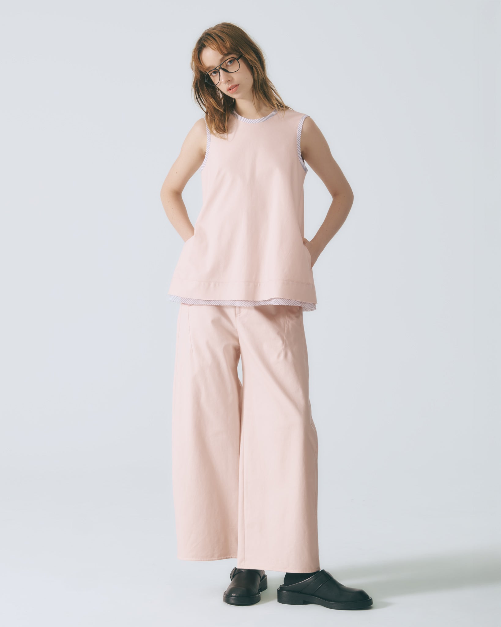 立體剪裁錐形褲(淺粉)