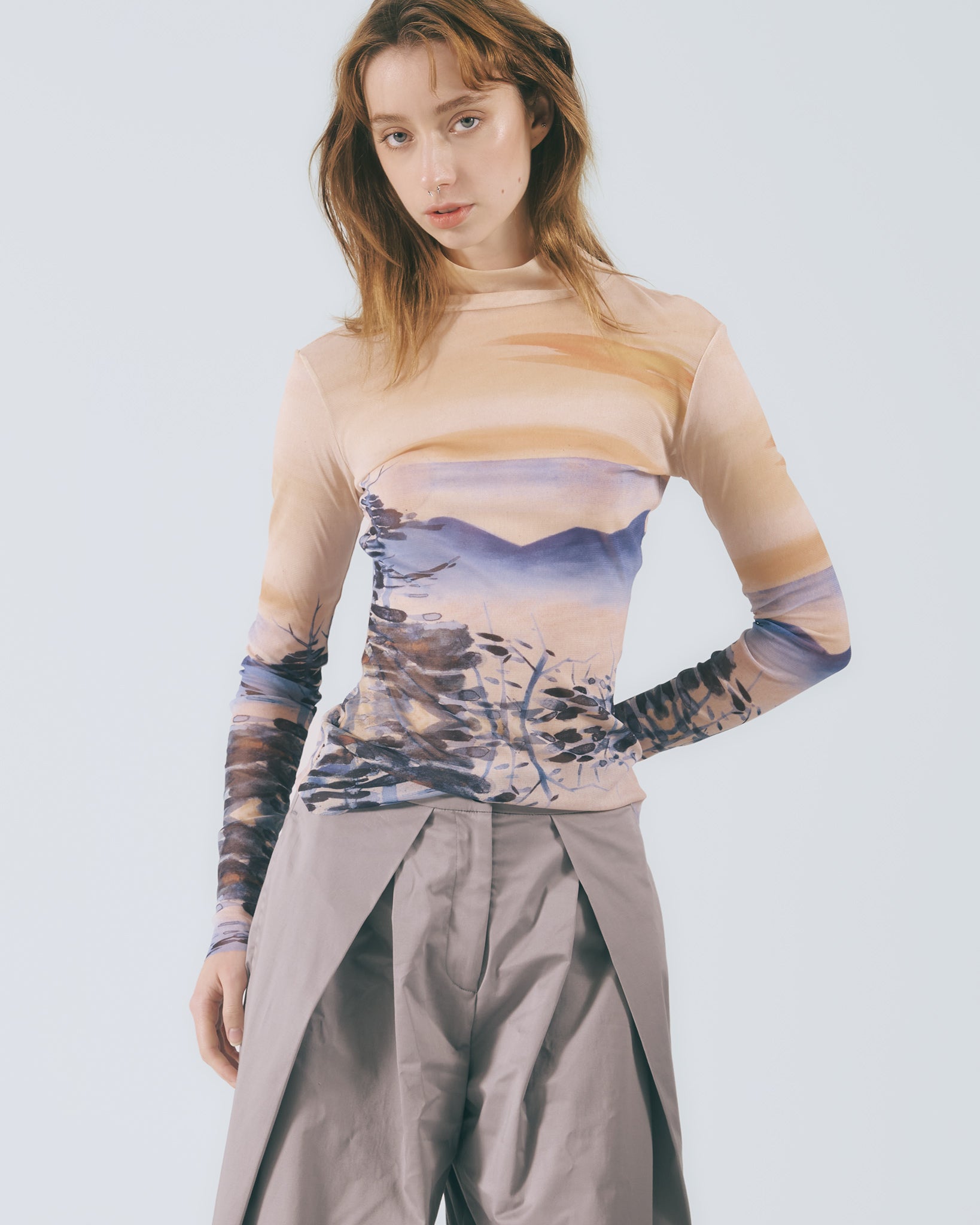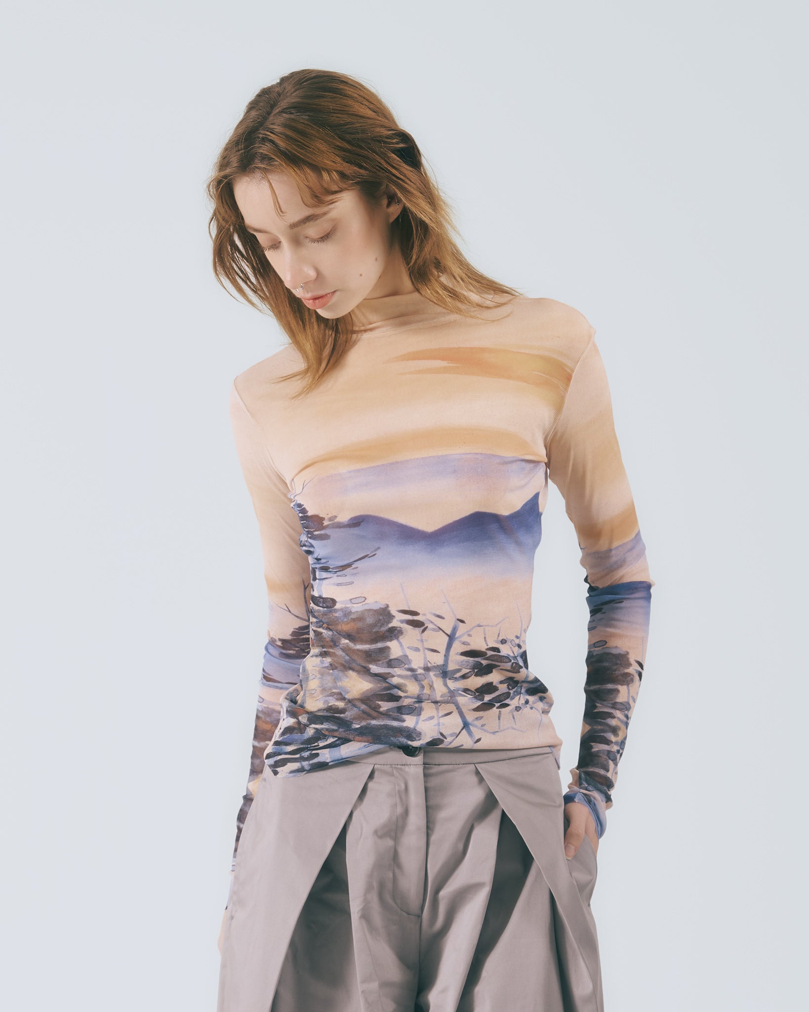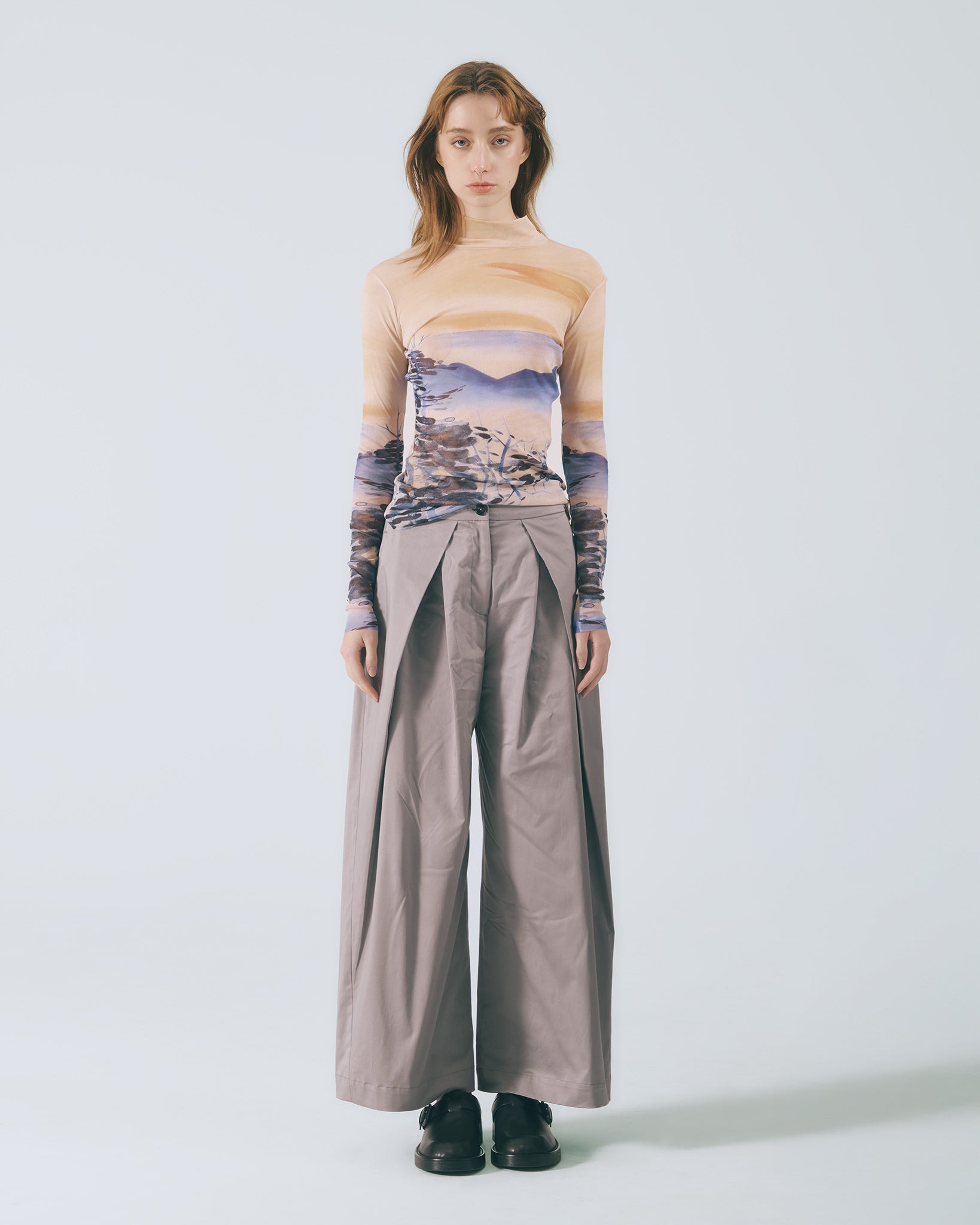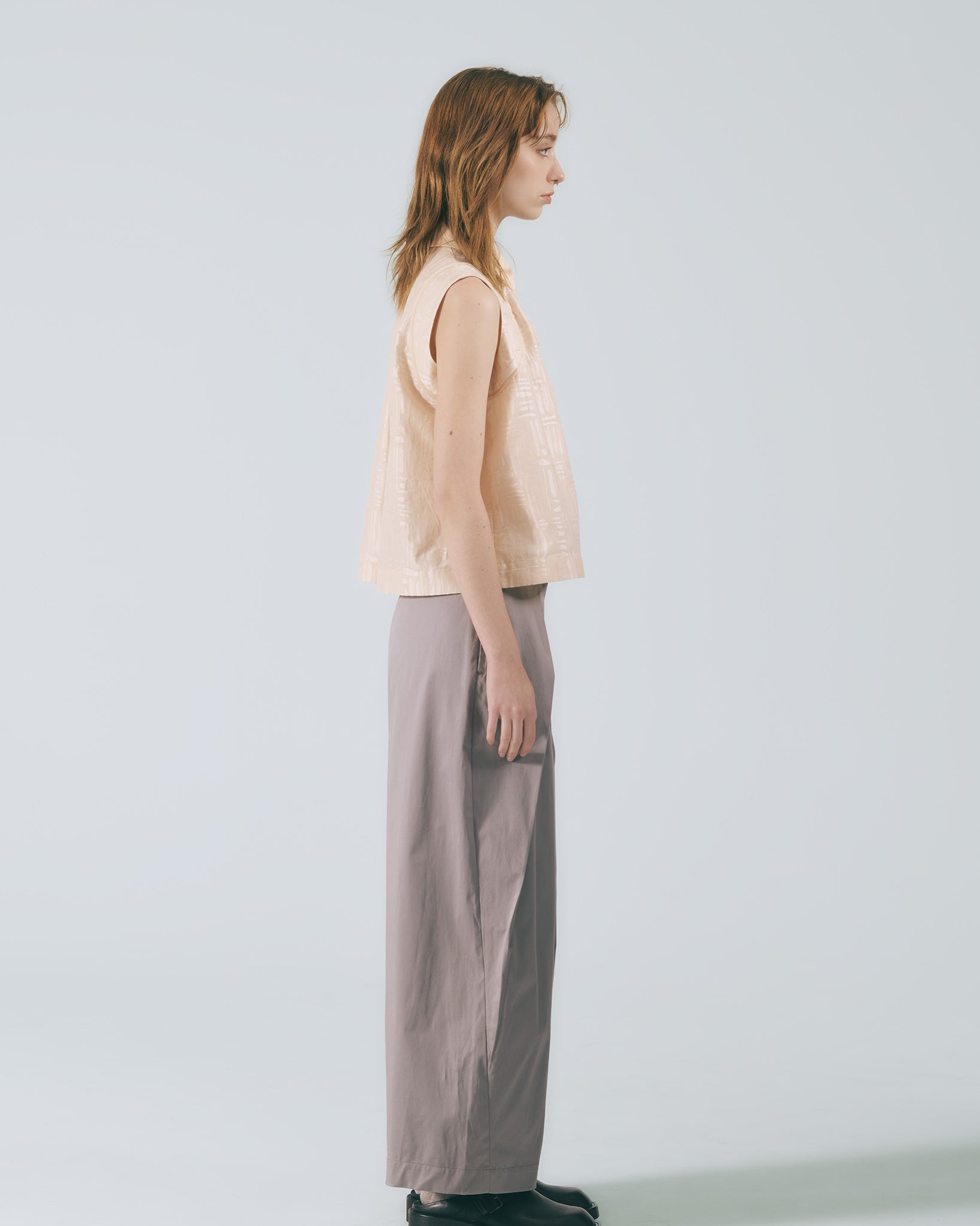低調卻不失質感的灰色調,散發內斂沉穩的氛圍,輕鬆融入各式穿搭風格。褲型採用寬版高腰設計,修飾腰線比例的同時,帶來自在舒適的穿著體驗。褲腳自然垂墜,行走間呈現柔和流動感。前側對稱向內打摺設計自腰部一路延伸至褲口,巧妙堆疊出立體弧度,讓整體輪廓更顯俐落有型。側邊口袋兼顧實用機能,後腰鬆緊帶設計提升包容性,能自在適應多元身型,日常穿著輕鬆無負擔。
