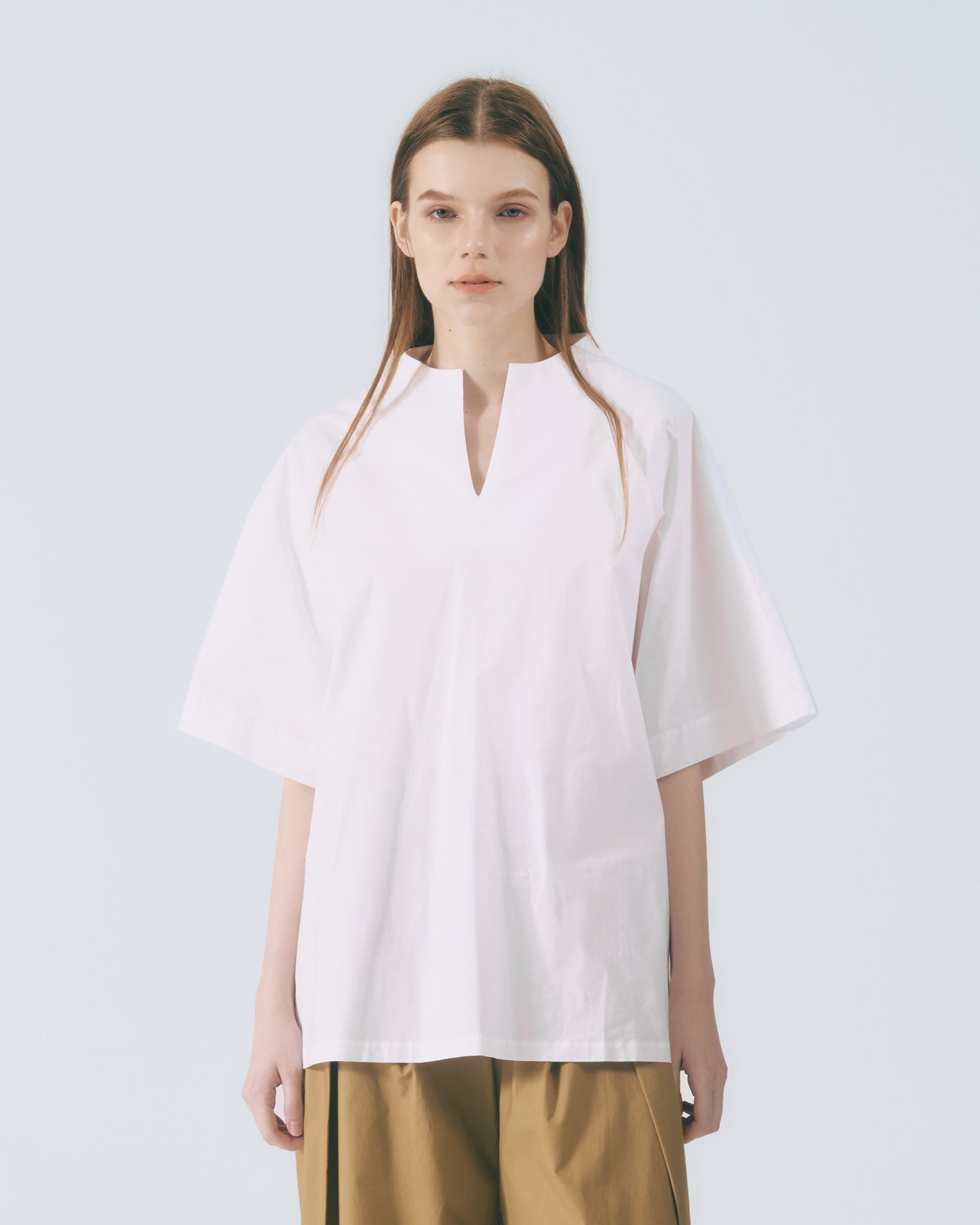 立開領寬袖上衣(白色)