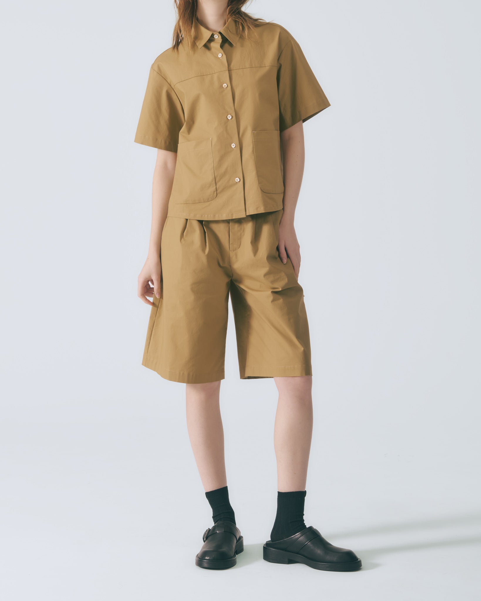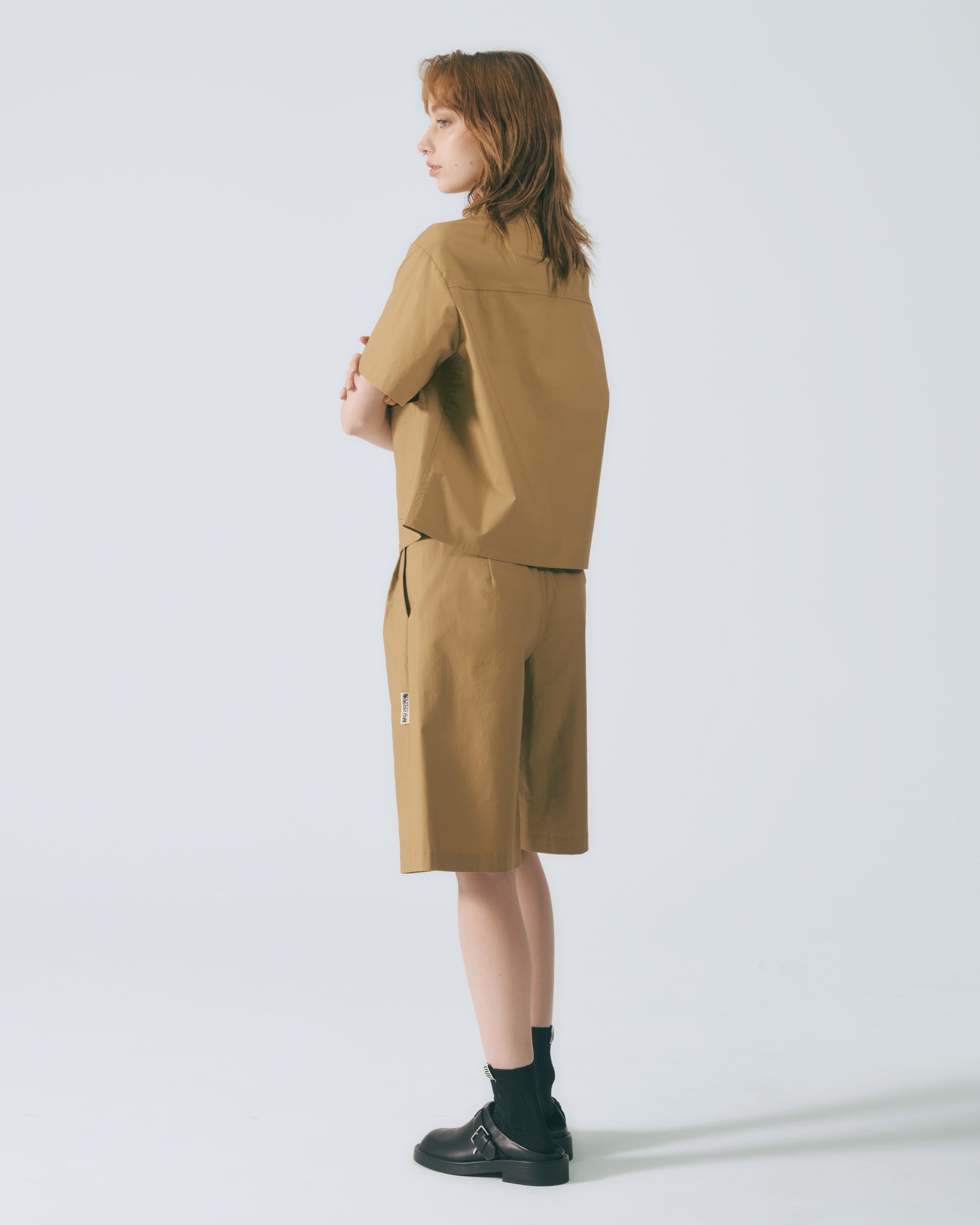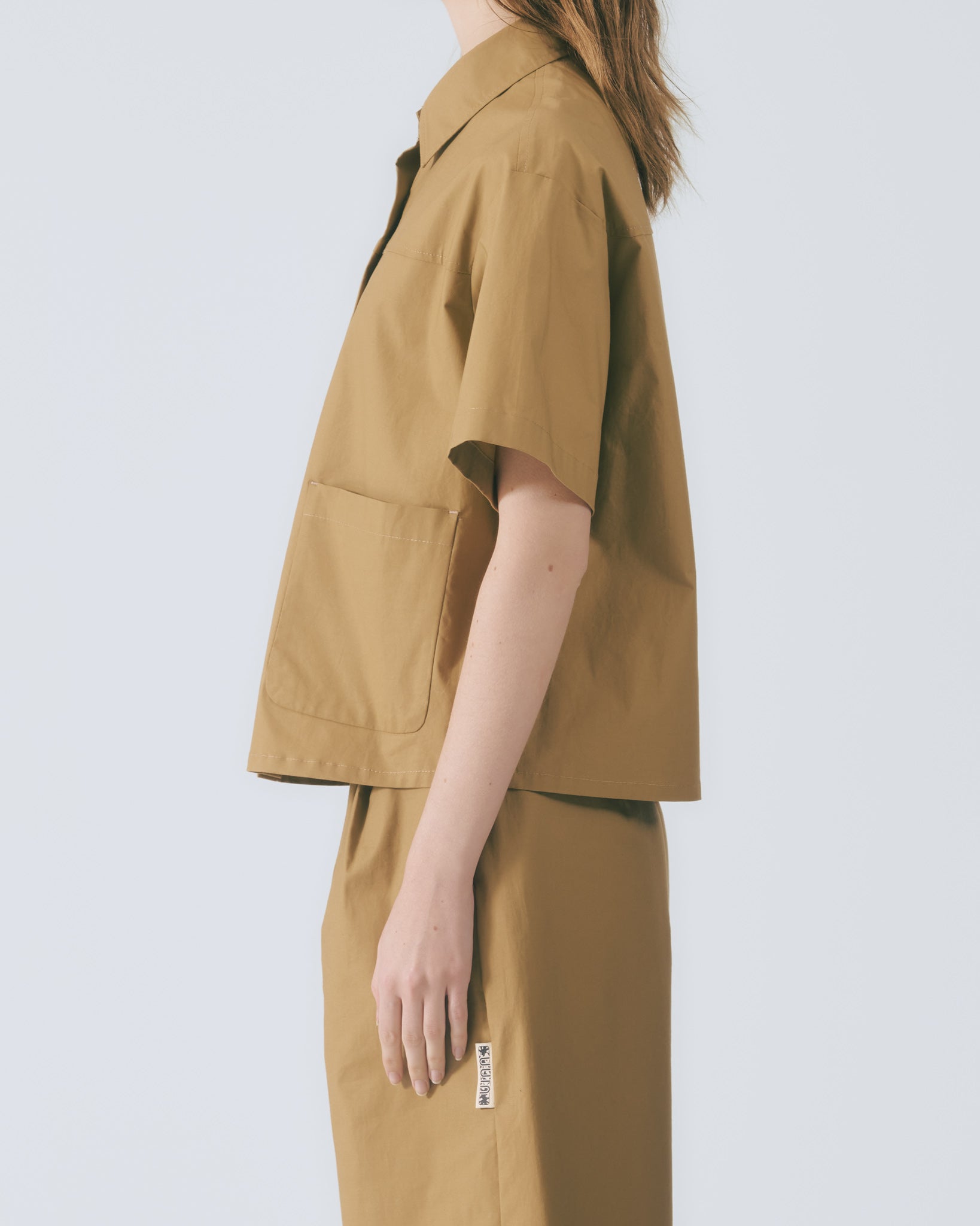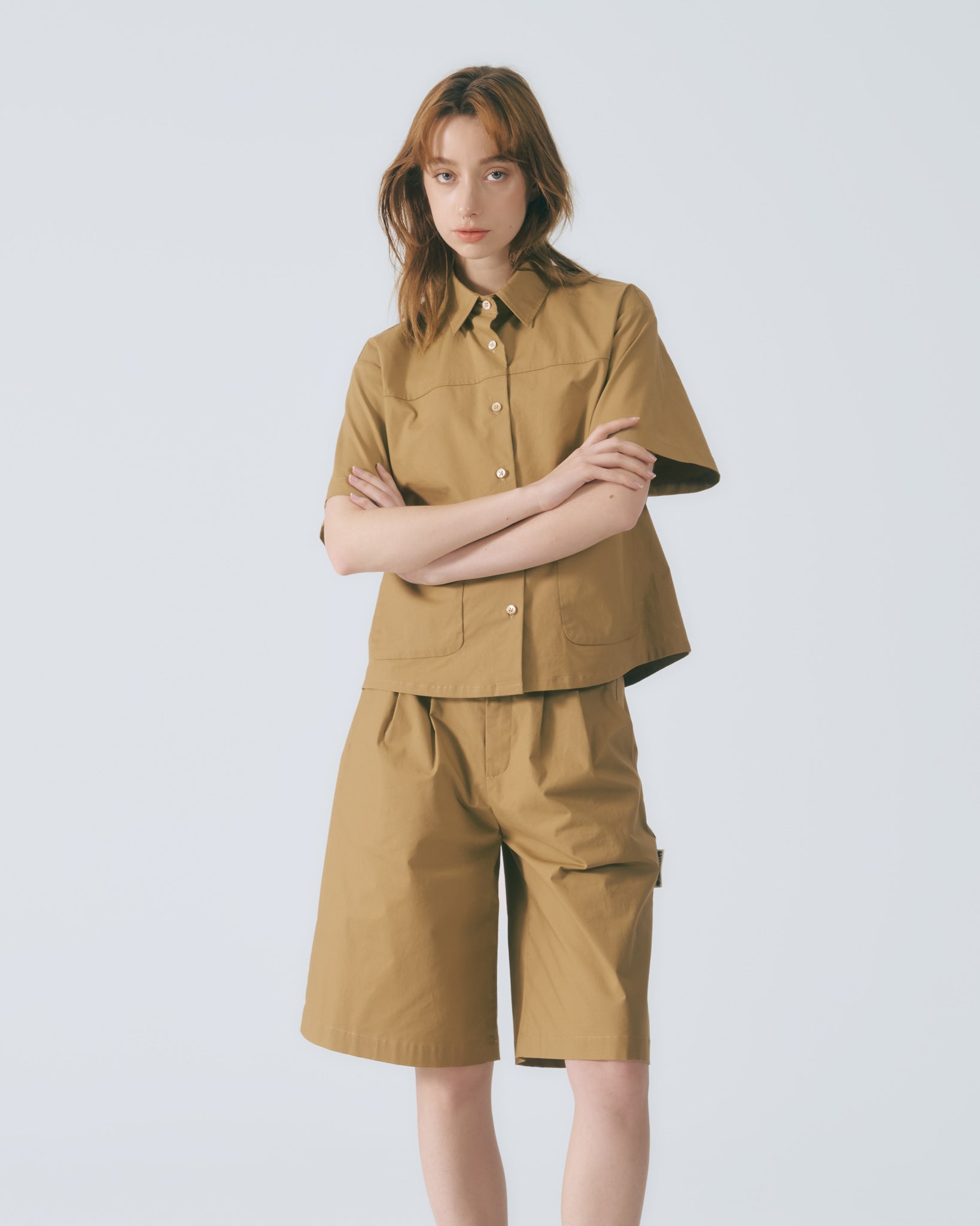 工裝貼袋短袖襯衫 (卡其)
