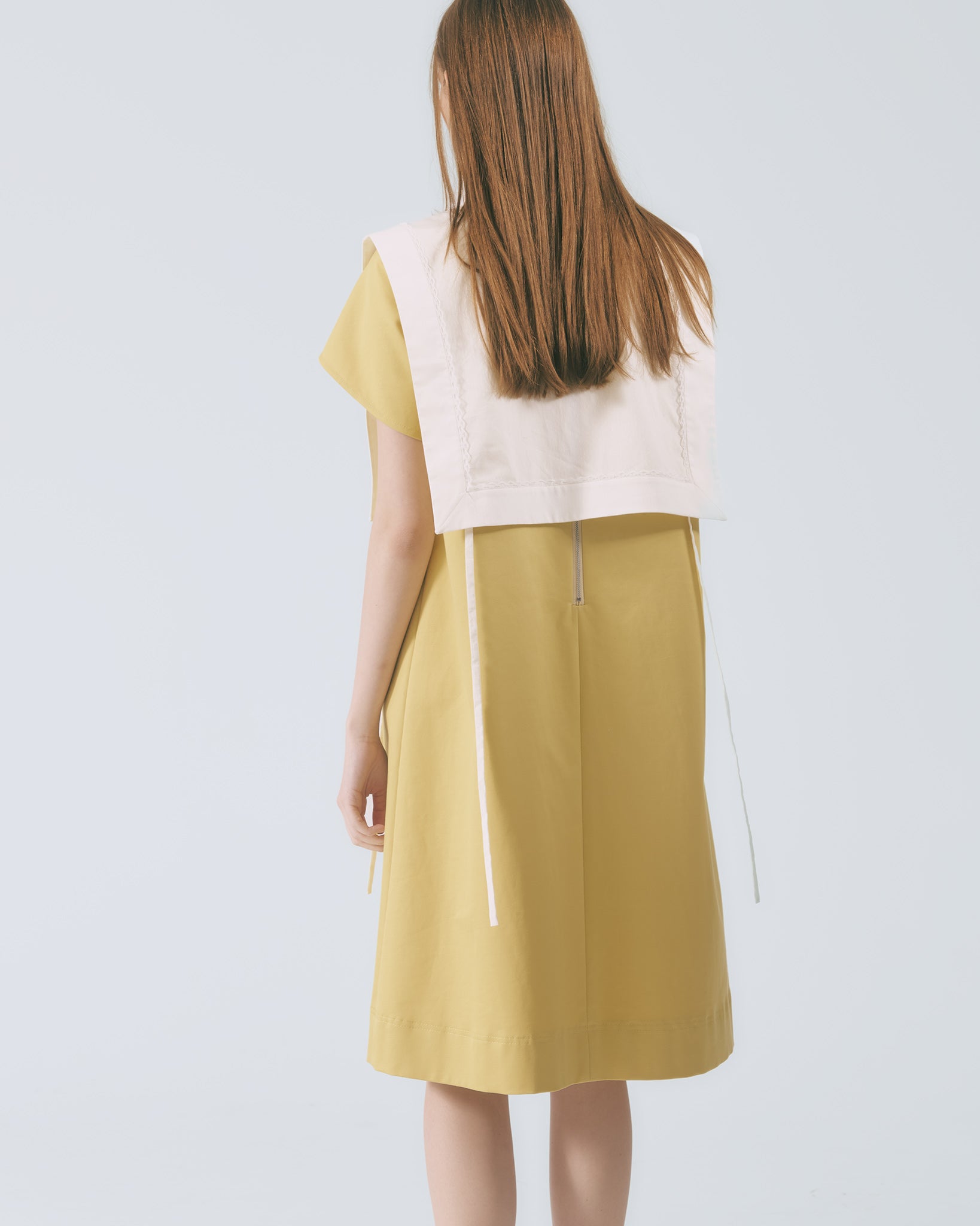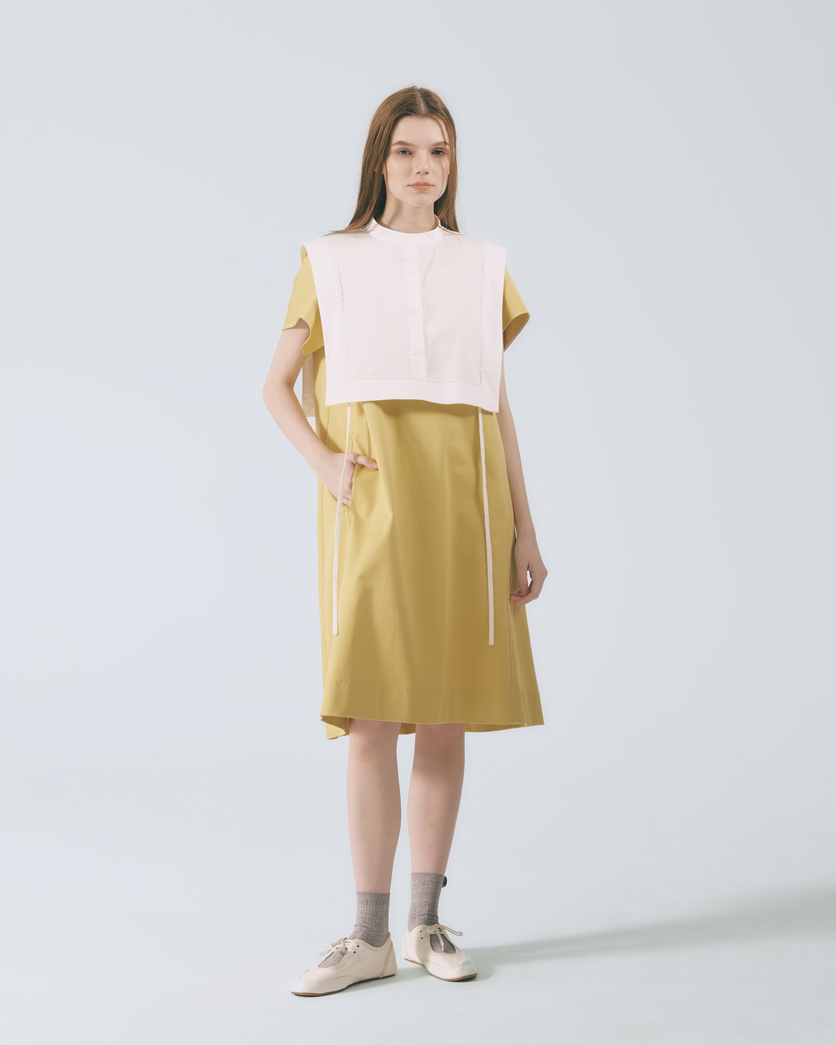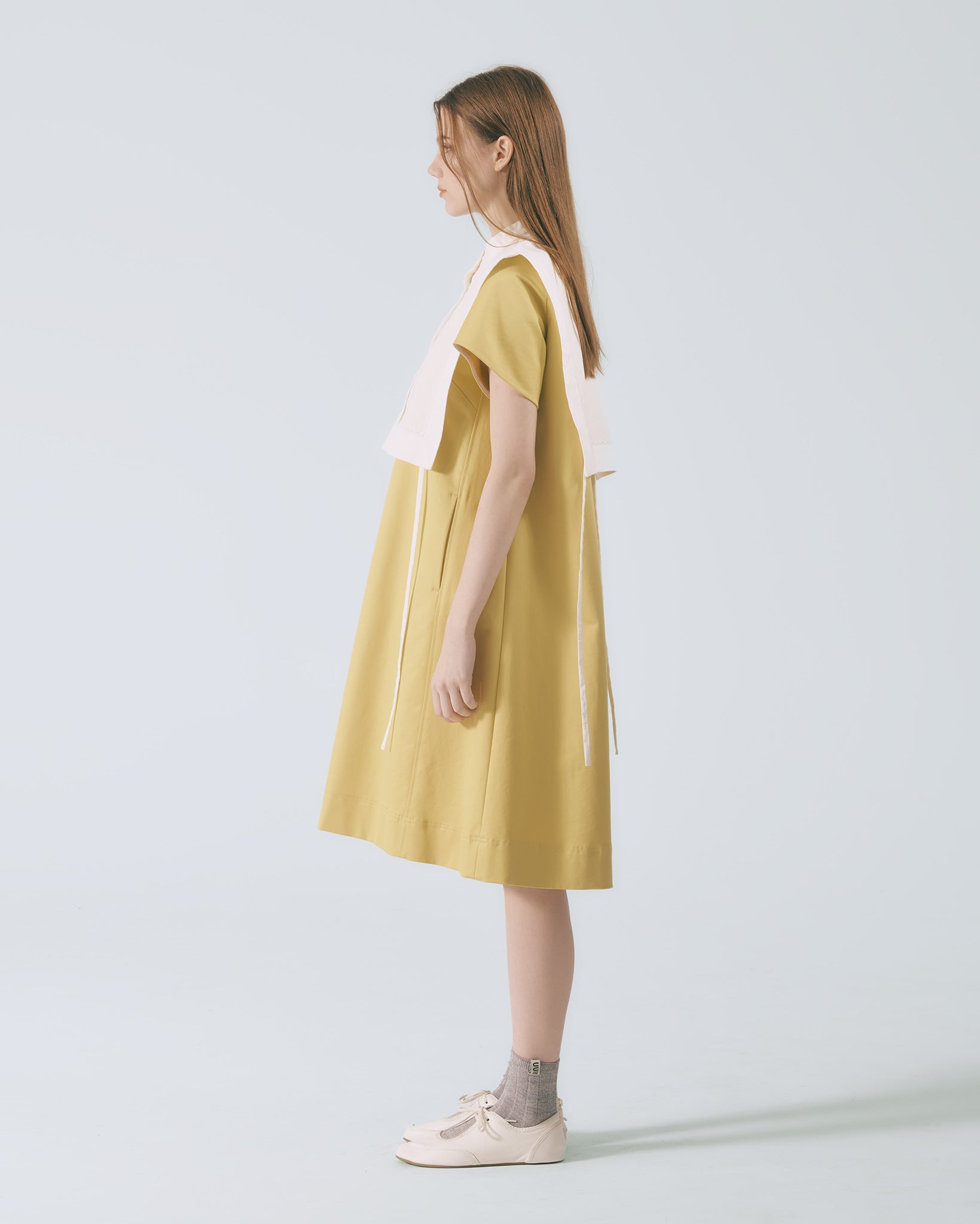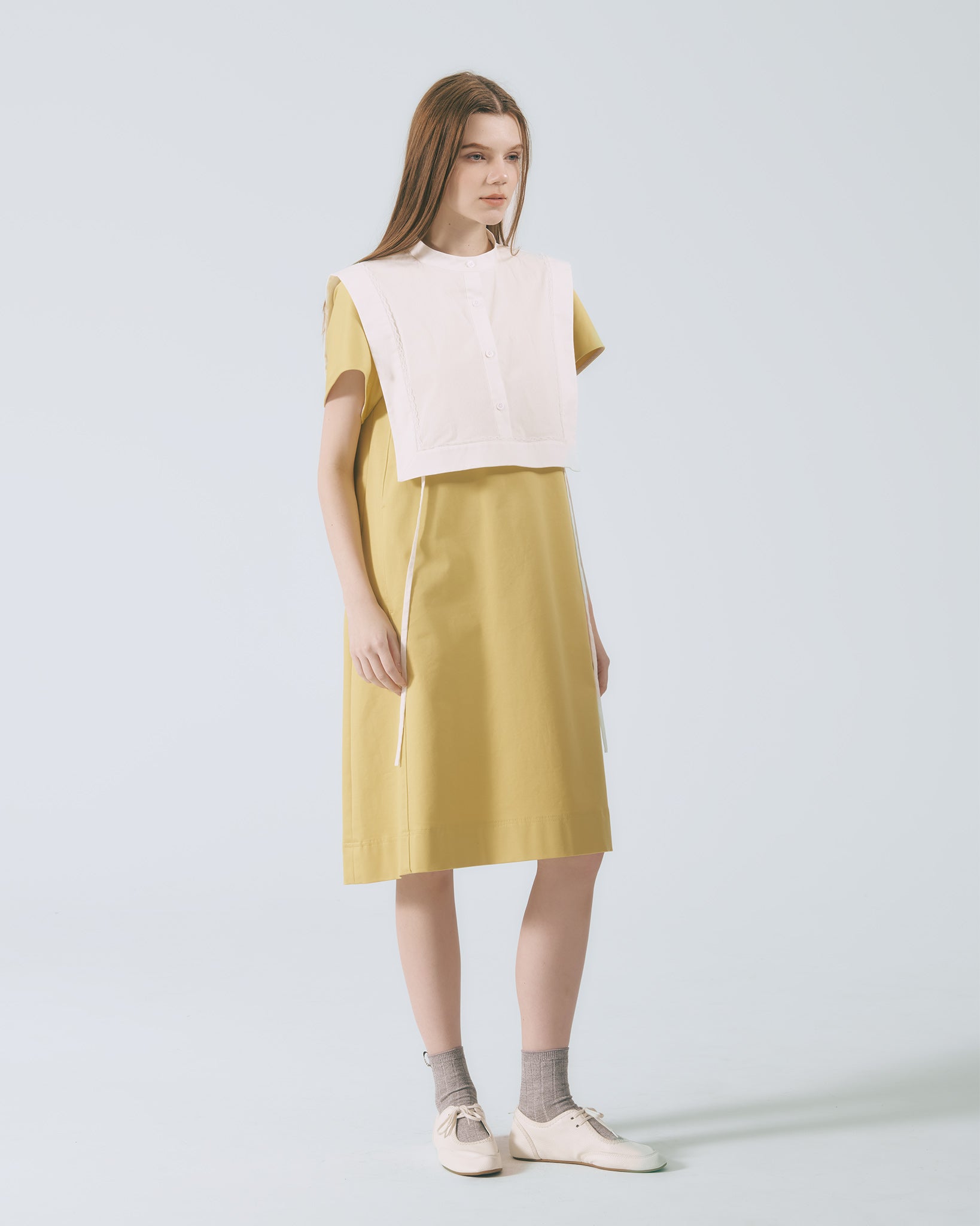 以彈性純棉材質打造H型輪廓洋裝,剪裁俐落且輕盈。寬袖落肩設計營造自然空氣感,立體袖型巧妙修飾手臂線條,穿著自在不拘。整體線條簡潔,適合春夏季節著用,鮮明而充滿活力的黃色調,展現明亮清新的季節氣息。